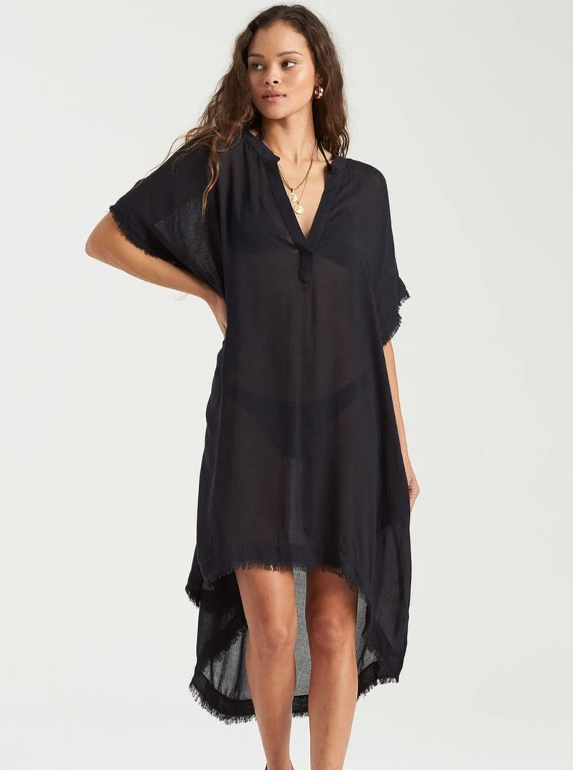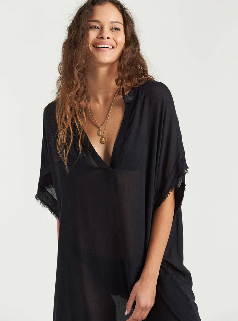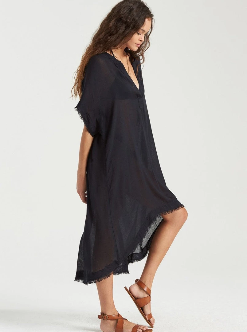 Washed ashore lines bring a well-travelled feel to the Found Love Cover Up. The relaxed midi dress is perfect for tossing over swim or lounging around, offering a lightweight woven fabric trimmed with raw edges.