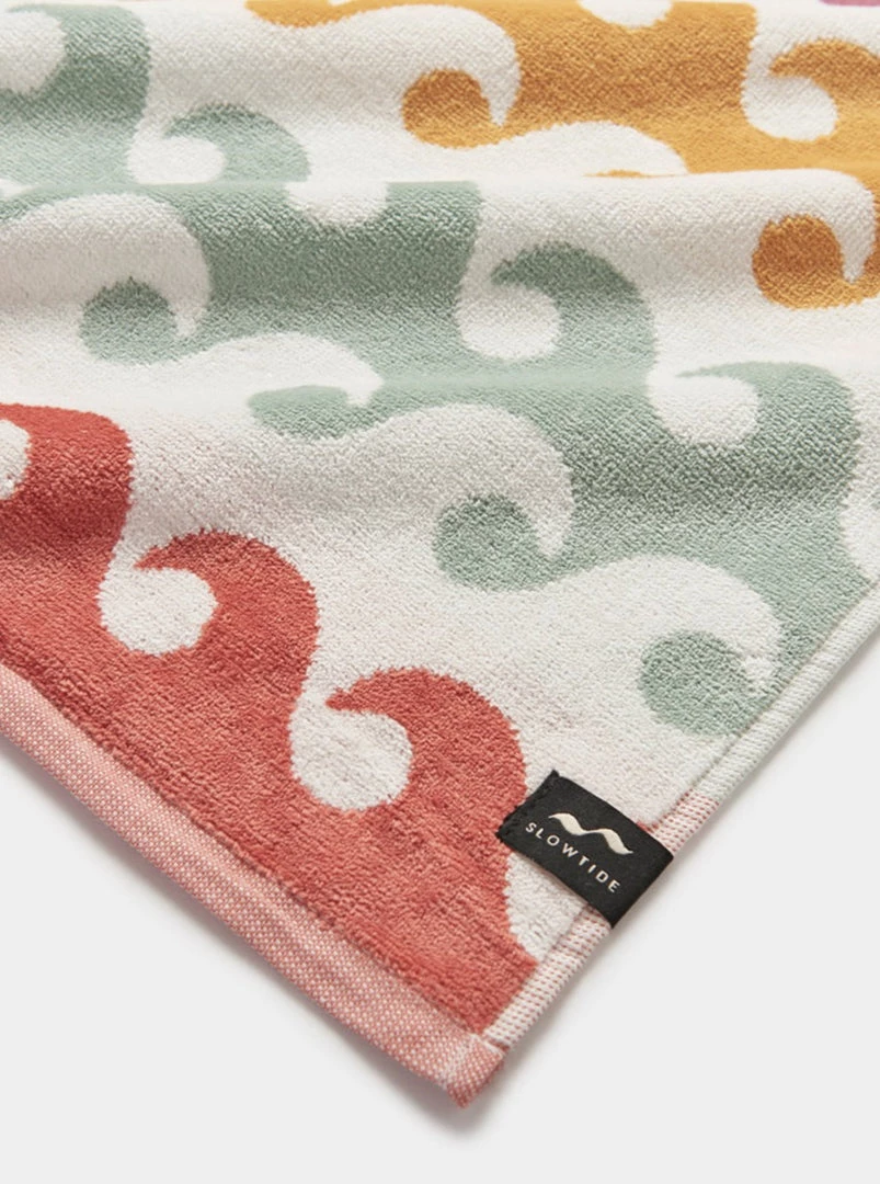 Functional – Features a drawcord loop for quick drying and is printed with a reactive dye that prevents fading over time.
