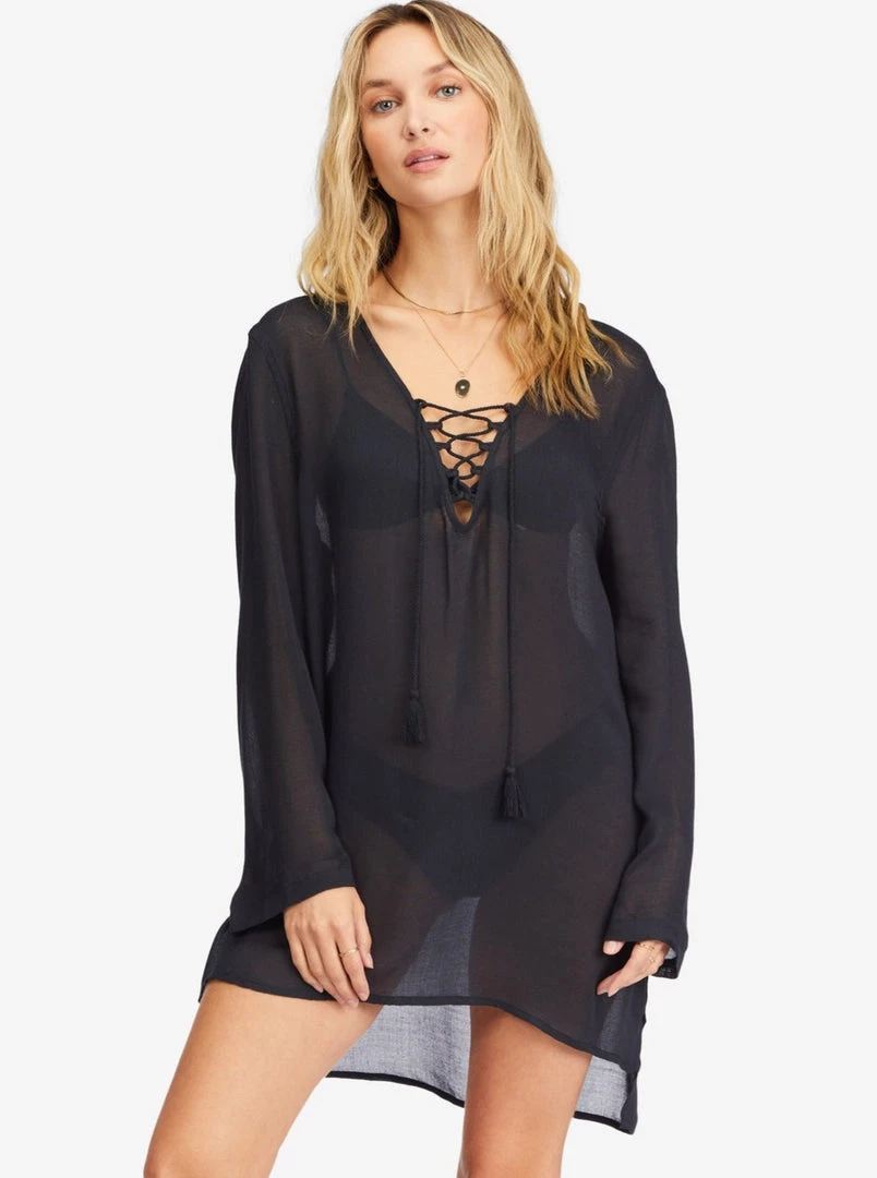 Sunkissed and sea-salted, the Blue Skies Beach Cover Up is a must-have for any laid-back day in the sun. This tunic-style women’s cover up features a lace-up V-neck with self-ties at the front. The fit is relaxed, to match the vibe, and the cloud gauze fabric offers a dreamy lightweight feel.