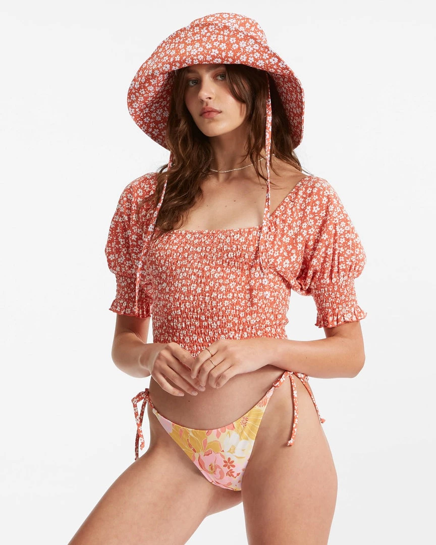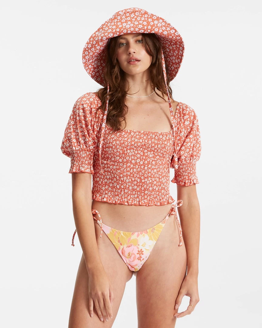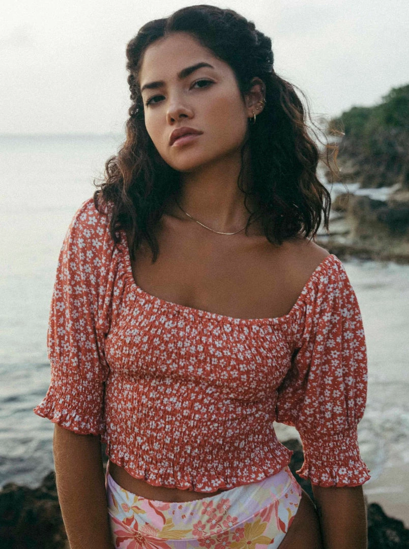 Summer is the season for fitted crop tops and puff sleeves. Lucky for you, the Coastal Sands top has them both. It features a playful floral print on lightweight cotton jersey, plus a comfortable shape and easy style that pairs well with your summer bronze.