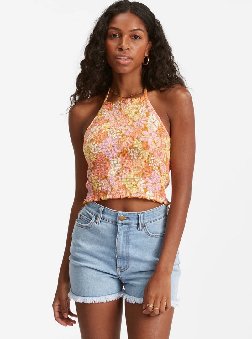 It’s a retro summer for us— Part of our Golden Daze collection, the Feels Like Summer tank top throws it back to the days of peace & love with a floral print, smocked jersey fabric, and a halter tie at the neck. Lightweight and super comfortable, it’ll quickly become a go-to.