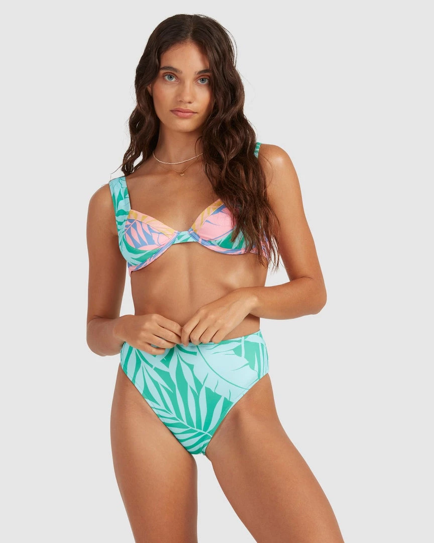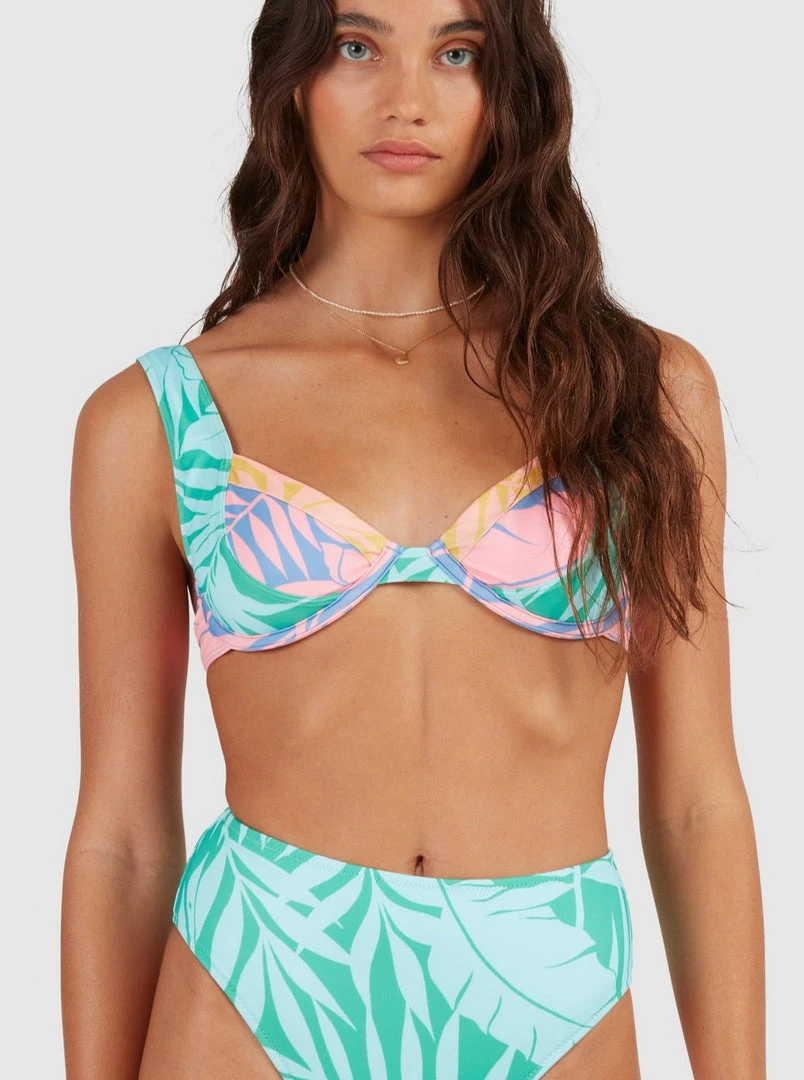 What do you get when you combine fluid lines of sol bursting color with a mash-up of throwback colorblocking & mystic palms? Your new favorite bikini. The Mystic Beach Chloe Bralette bikini top transports us to a secret beach imagined only through daydreams with a bold tropical print on recycled stretch fabric. The medium coverage design features cup paneling to support your active beach day and the adjustable straps let you customize the fit. This women’s bikini top is a piece from our My Secret Beach Collection.