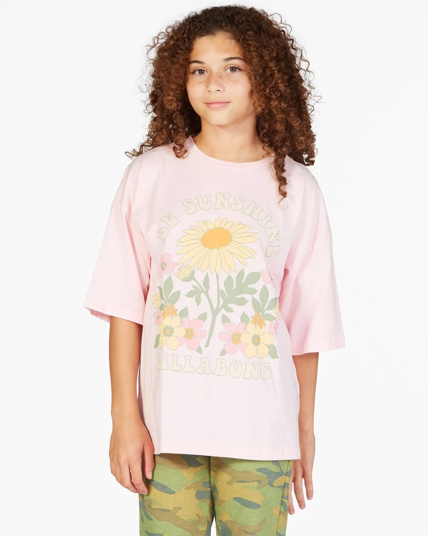 A bright and happy tee to match your natural glow— the Girls’ Be Sunshine t-shirt features a large chest graphic on premium cotton fabric. The girls’ boyfriend tee has an oversized shape to keep it feeling loose and comfortable, plus a piece-dyed wash to create a rich, lasting color.