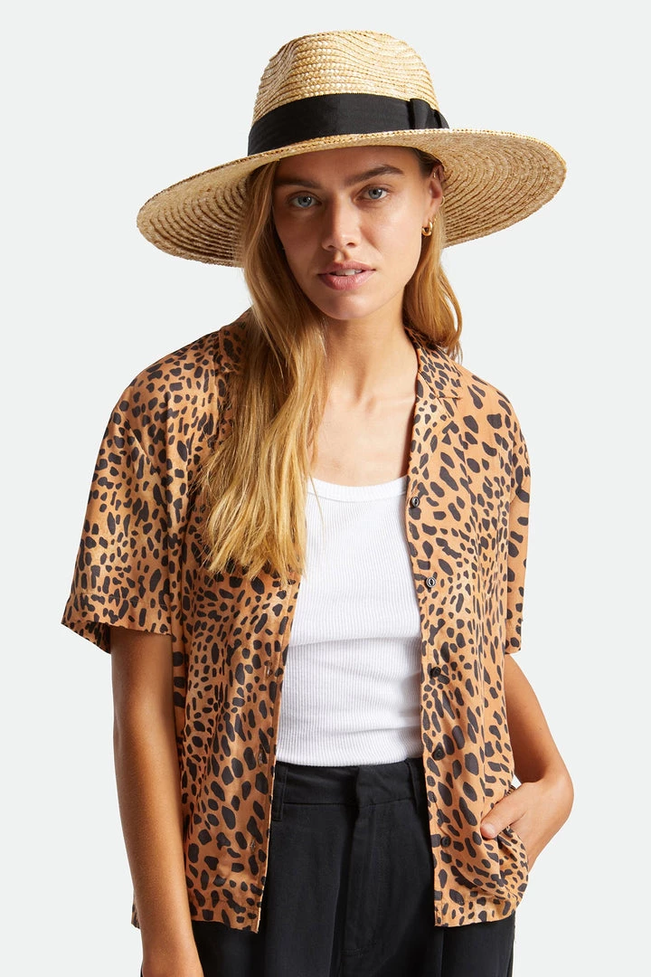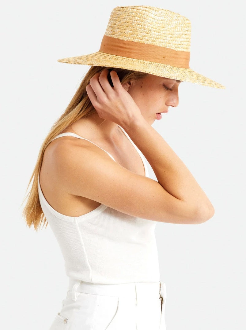 The grosgrain band and straw strike a balance between casual and elegant, offering a finishing touch to all your favorite spring and summer styles. The Joanna does it all.