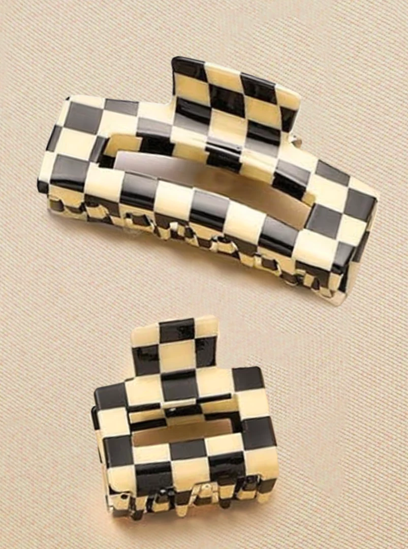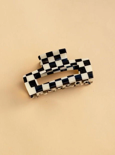 - checkered acetate hair claw