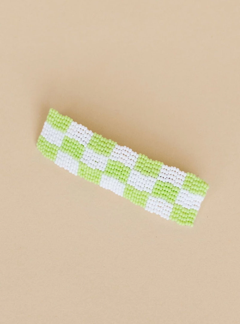 Amelia is our hand-beaded hair clip, now in plaid for spring! With a single closure, stainless steel barrette closure Amelia is perfect for getting your hair out of your face and making a statement!
