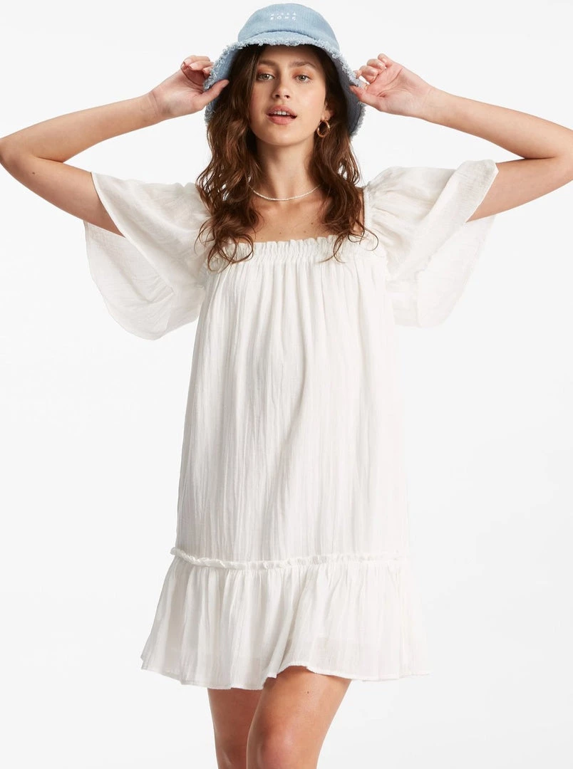 Flutter sleeves and a floaty shape lend the She’s A Doll babydoll dress its romantic and feminine feel. Crafted in airy cotton gauze with a straight neck and ruffles at the hem, it’s super pretty and summer-ready— part of The Sea And Me collection.