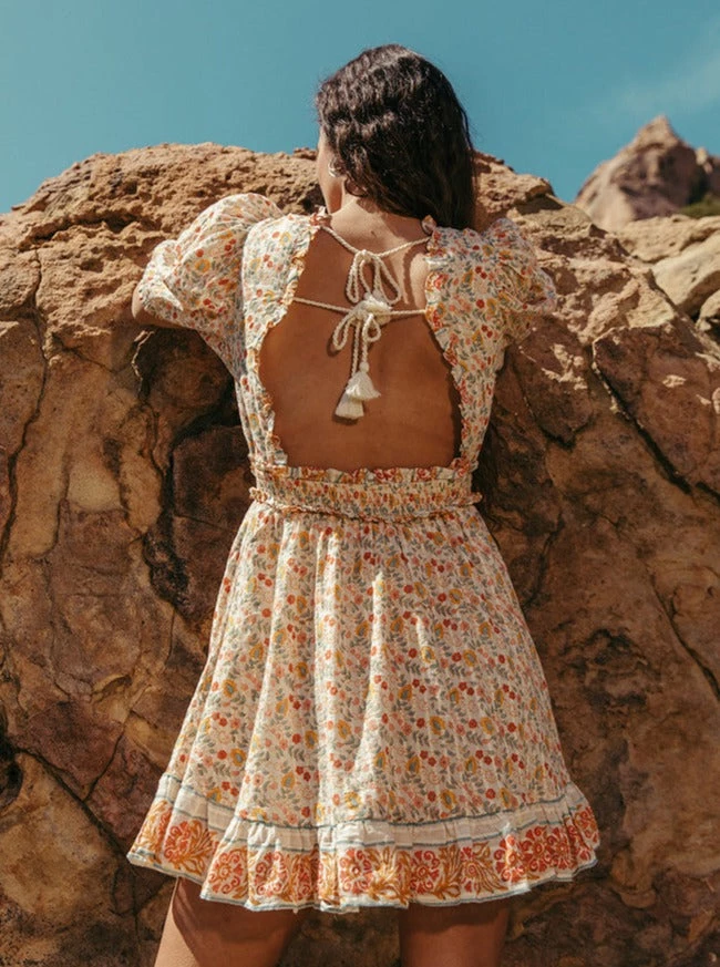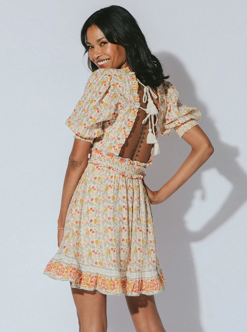 Made of 100% organic cotton, the Dallas Mini Dress is a unique dress perfect for girls night out, with the open back and tassel ties. Pair with strappy sandals and a wide brim hat.Â