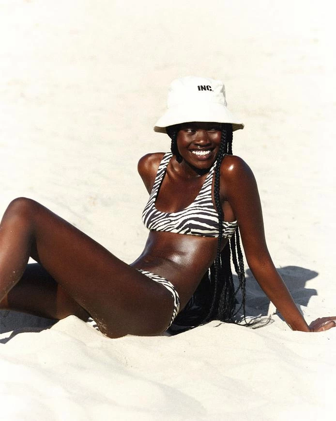 This 90’s inspired pant features a sleek silhouette that highlights curves, elongates legs and flatters that booty! Incorporating a V front and back design with a higher rise through the hips and mid cut coverage through the back. This style is made from luxurious recycled fabric with ultra-flattering seamless edges. Features our vacay vibe custom Zebra Print.