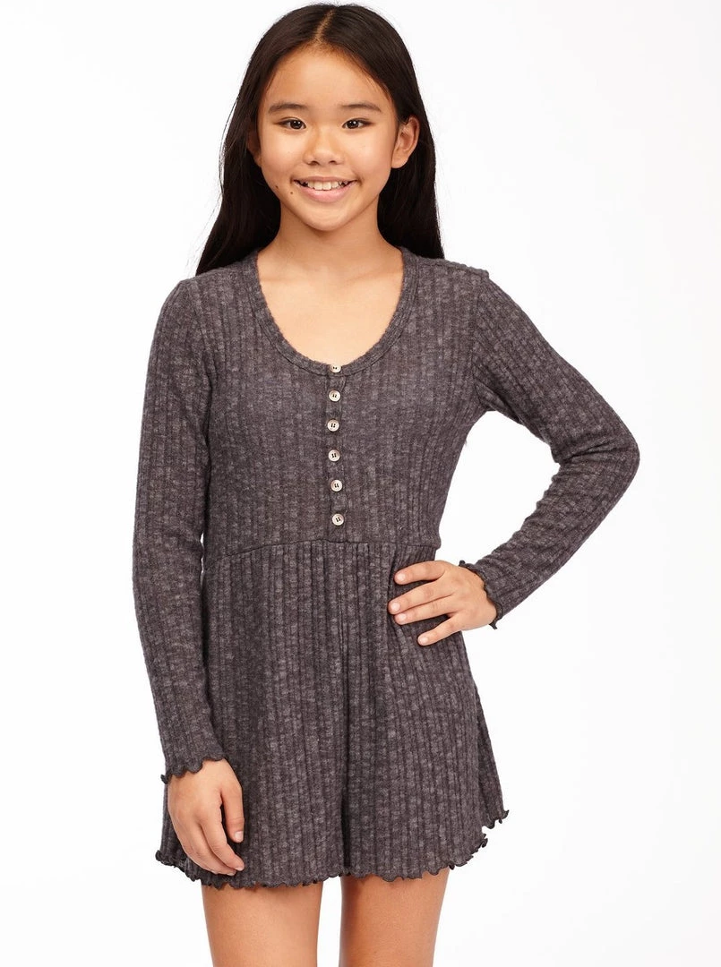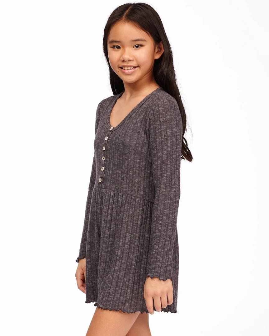 Never a bad time in the Girls’ To The Weekend Romper. Made in a cozy soft ribbed fabric, this girls’ woven one-piece romper delivers a go-anywhere style with a relaxed, babydoll fit and front button plackets.