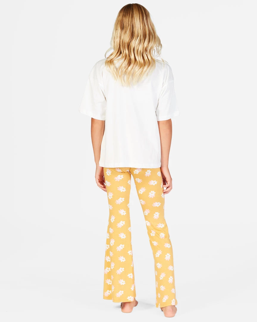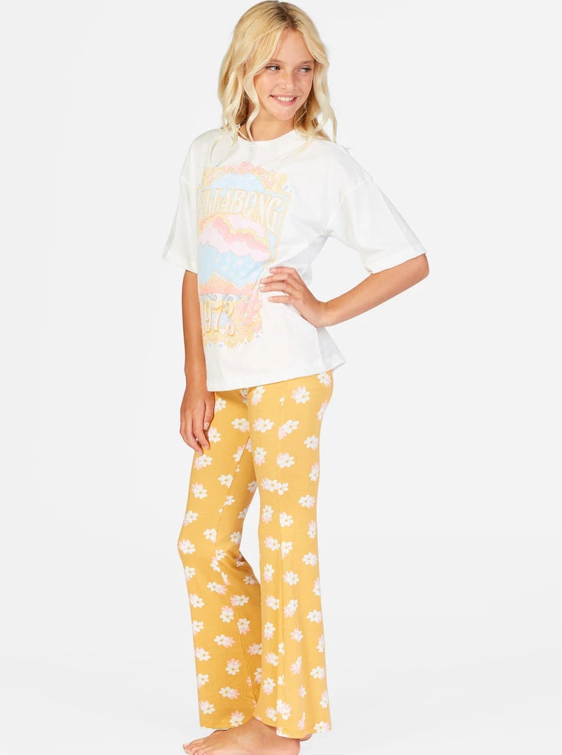 Fair warning— these fun flares will have people asking where you get your look. Delivering retro style made for the modern-day flowerchild, the Tell Me Pants feature a colorful, bold print on stretch fabric. With a comfortable elastic waist and flared leg, these pants will have you coasting on good vibes and 70s spirit.