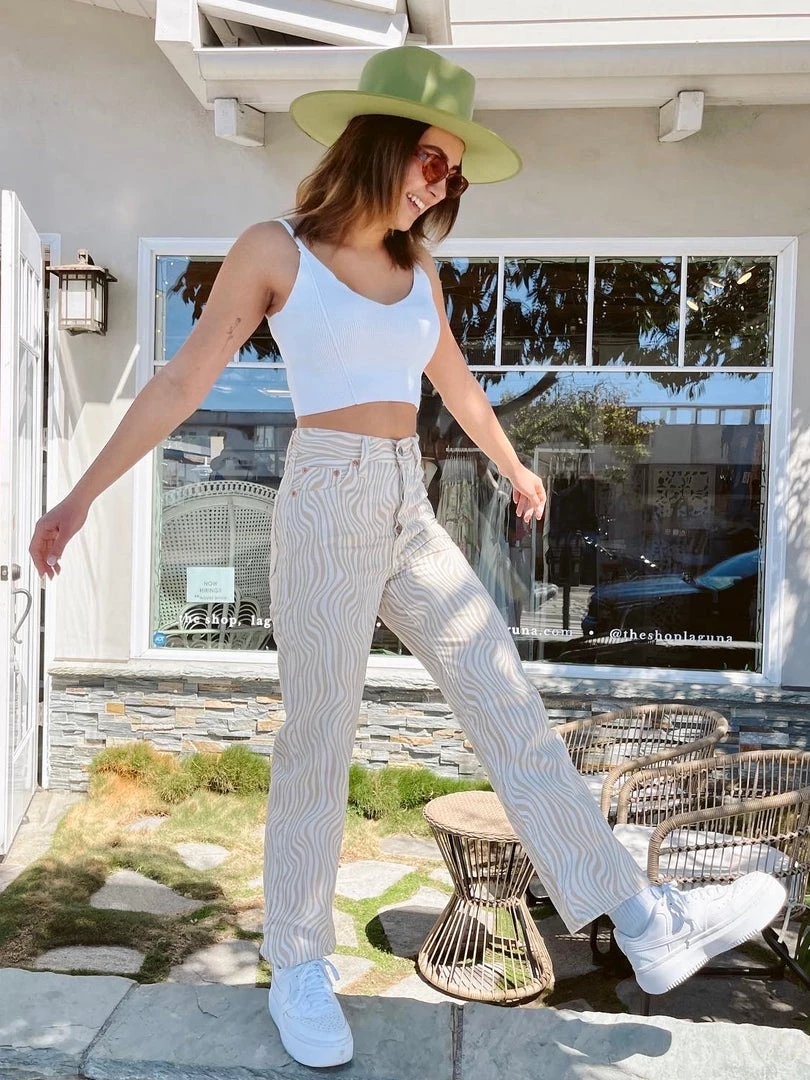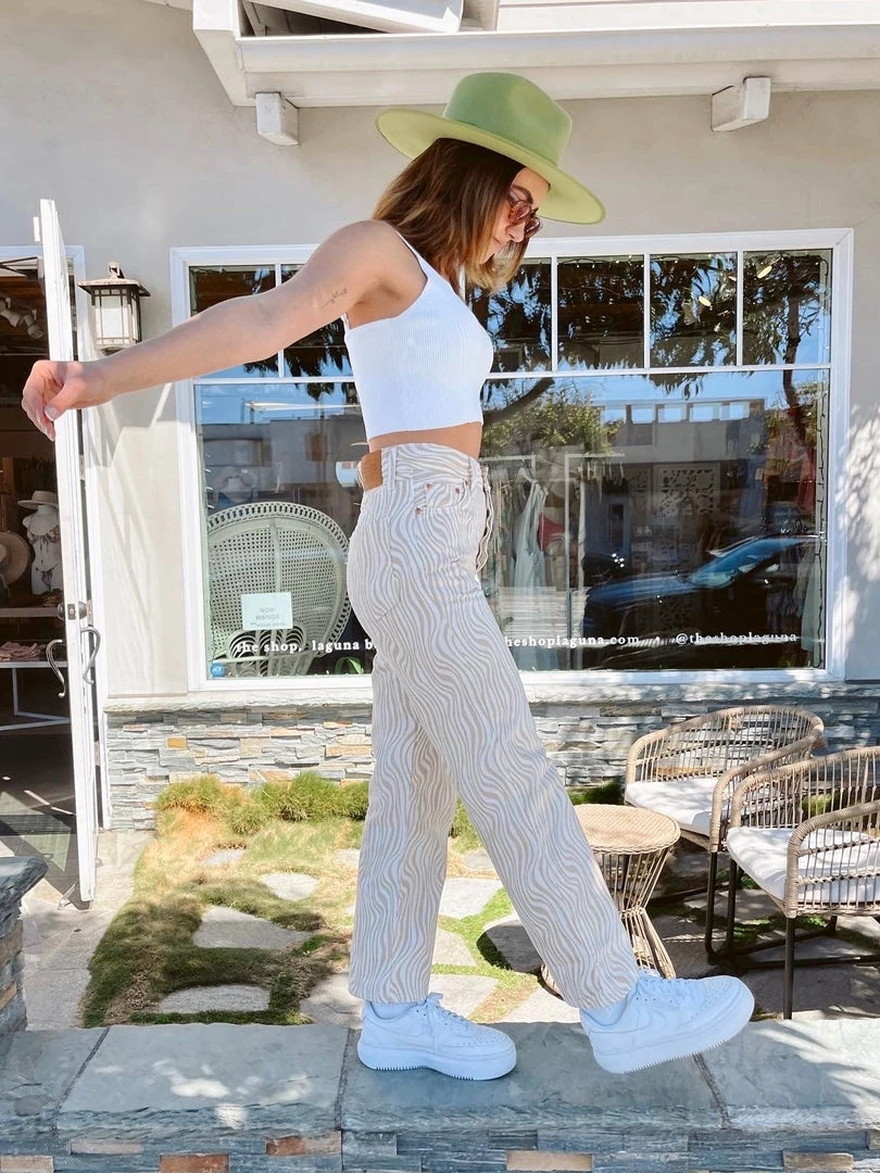 Our favorite silhouette is now featured in a funky new pattern! The Ribcage Straight Ankle in Wavy Lines is the original ultra-high rise that we love but featured in a never-before-seen print. Fashion has placed an emphasis on bold prints and vibrant colors. This bold, 70’s inspired pattern will take your look from neutral to NEW!