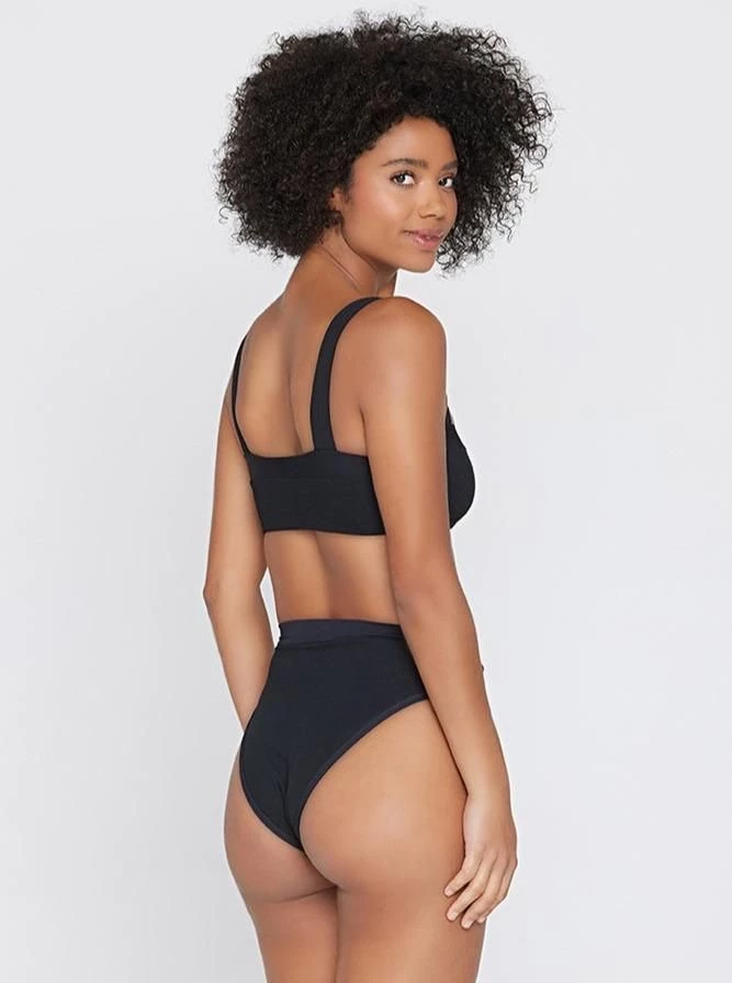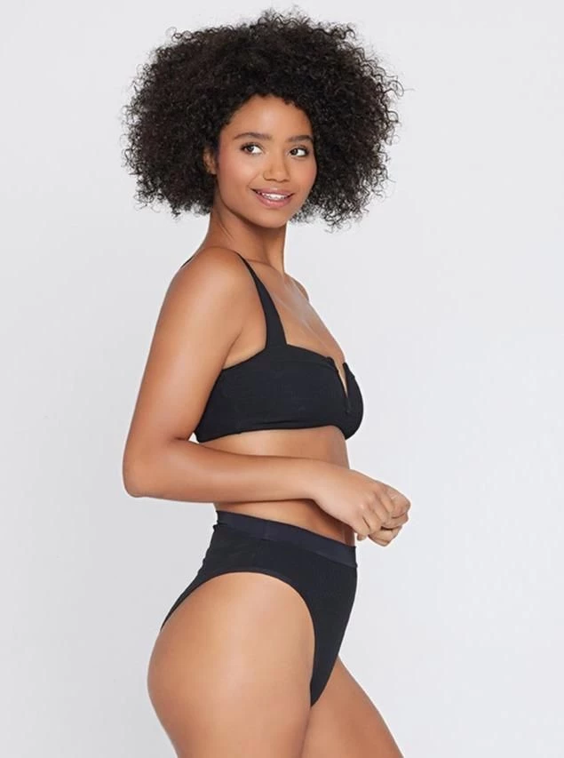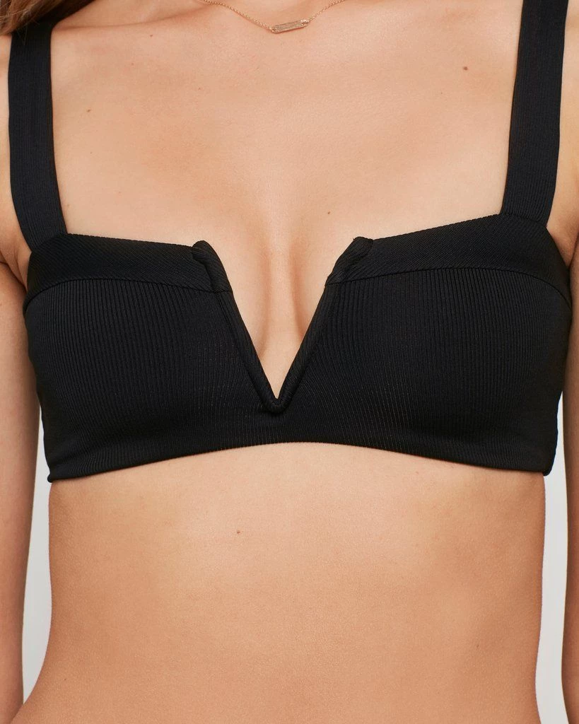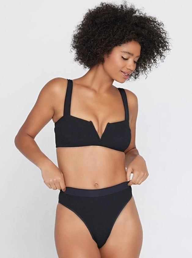 The Lee Lee features soft ribbed texture fabric and a sculptural silhouette. Offering comfy, moderate support. Lightly lined in our signature buttery fabric with wired V-neck detail at bust.Â