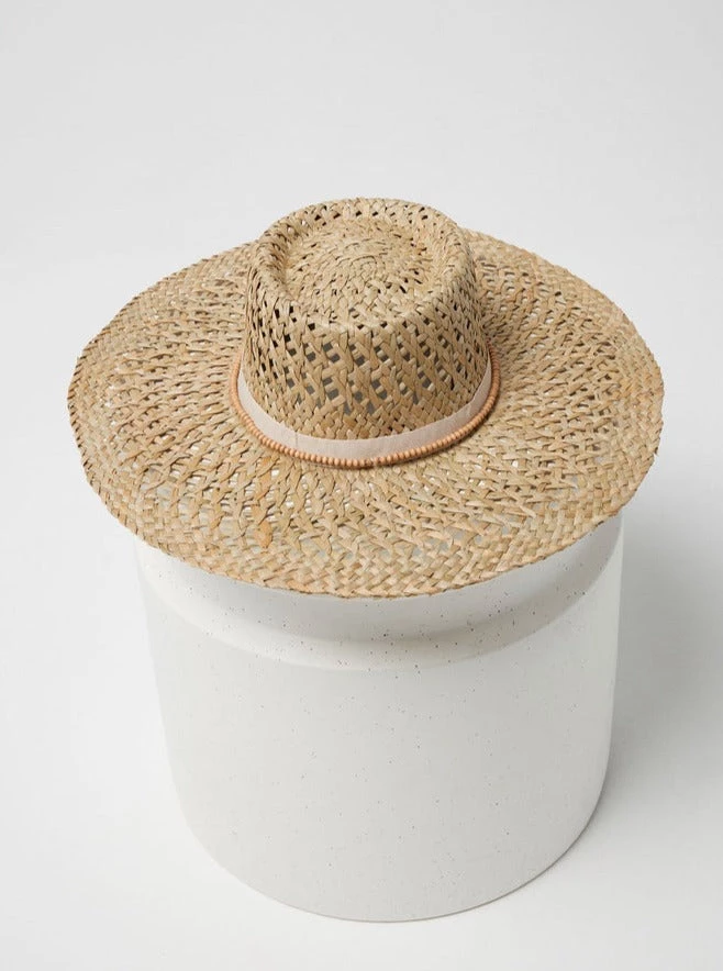 An essential must have for any getaway, the Marbella Hat is a natural straw hat with a cream beaded headband as well as internal soft headband.