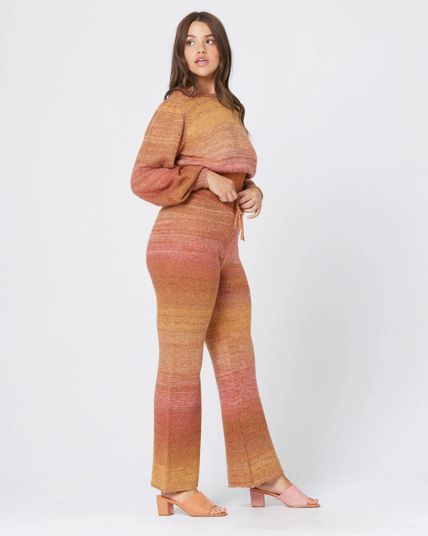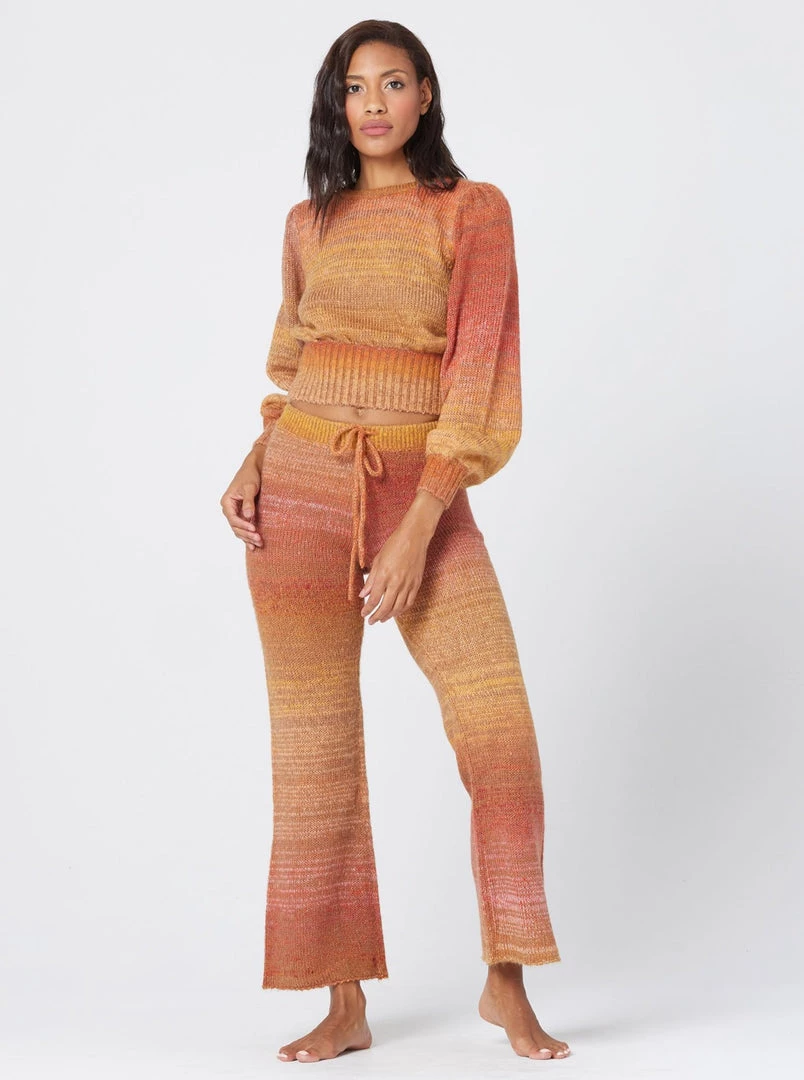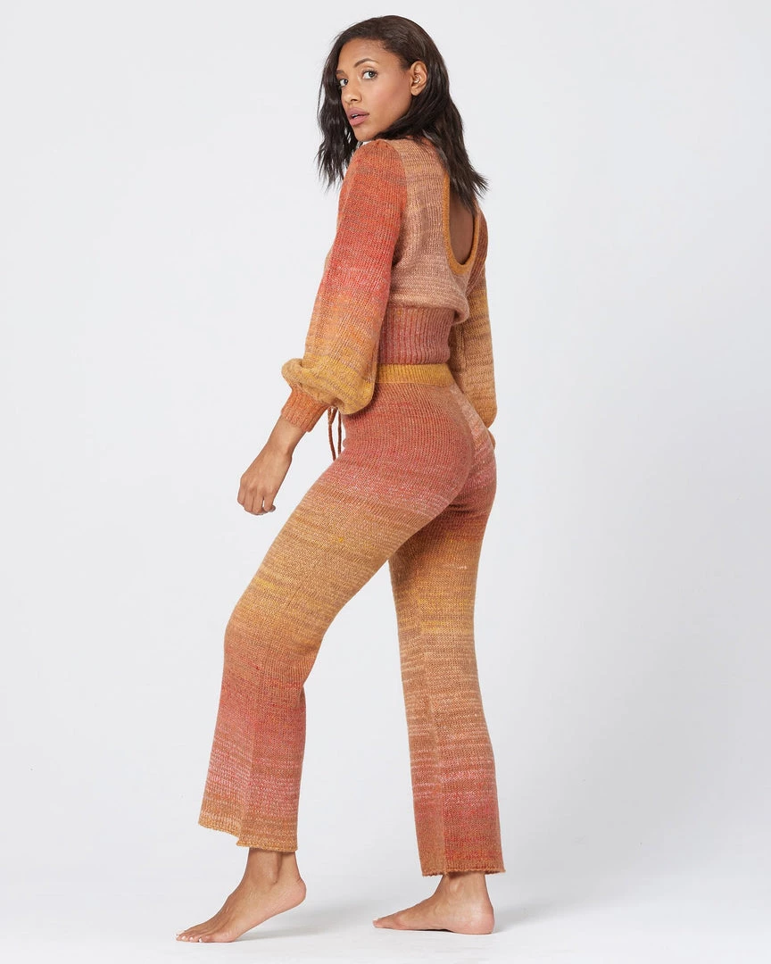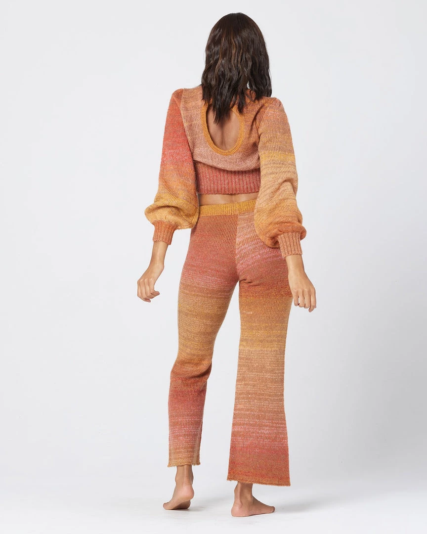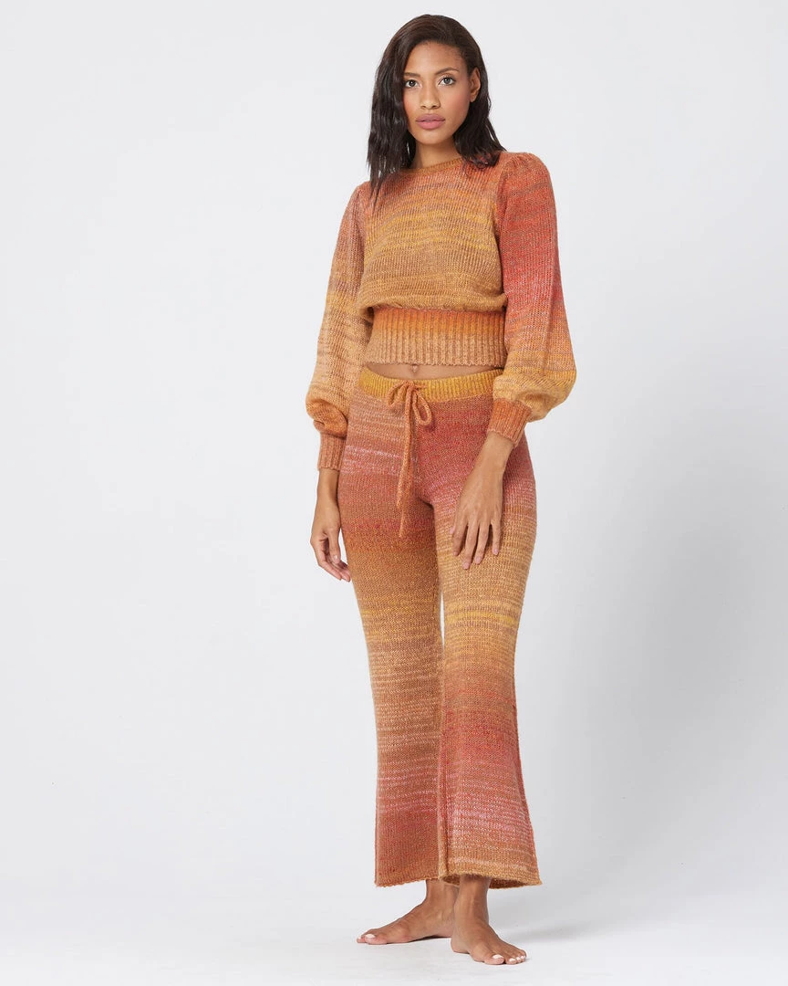 We’re taking it back to the 70s with the Juniper Sweater. This cropped knit was designed in a super soft sunset-stripe fabric and features an open keyhole back, full-length balloon sleeves, and a stretchy ribbed cuff and hem. Pair with the matching Laurel Pant for the ultimate throwback vibe.