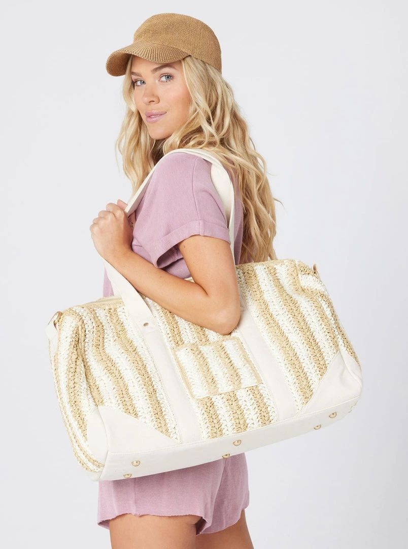 Pack all your beach or getaway essentials in the Endless Summer Duffle Bag. Features an exterior pocket and an adjustable, detachable shoulder strap.