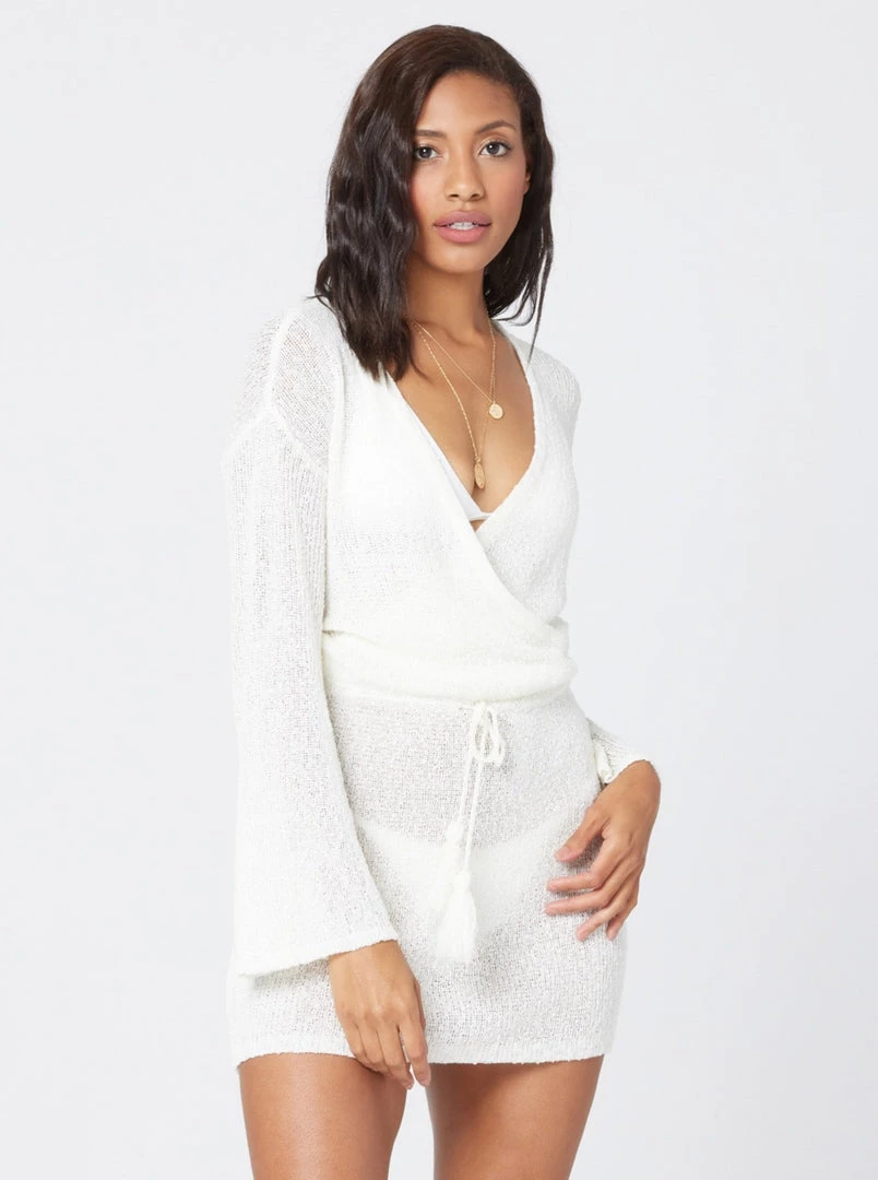 Boho style meets comfort with the Topanga Dress. Crafted from soft, lightweight sweater knit fabric, this cozy dress features romantic bell sleeves with a flattering drawcord waist. Sheer coverage makes it a perfect choice for a stylish beach cover-up.