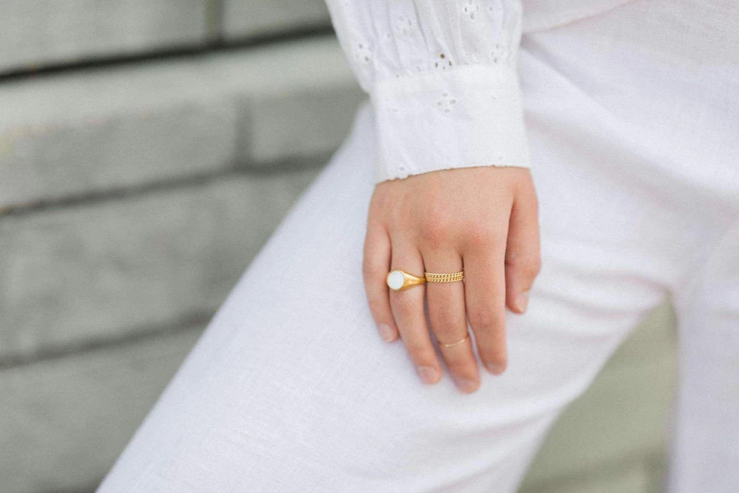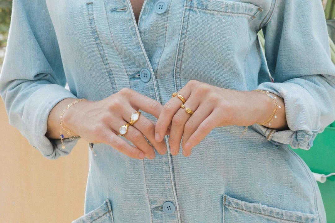Material: Gold dipped with our signature 14k gold plating and a mother of pearl surface