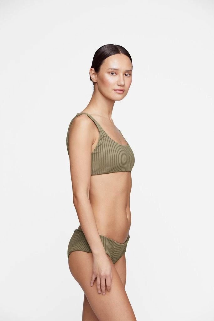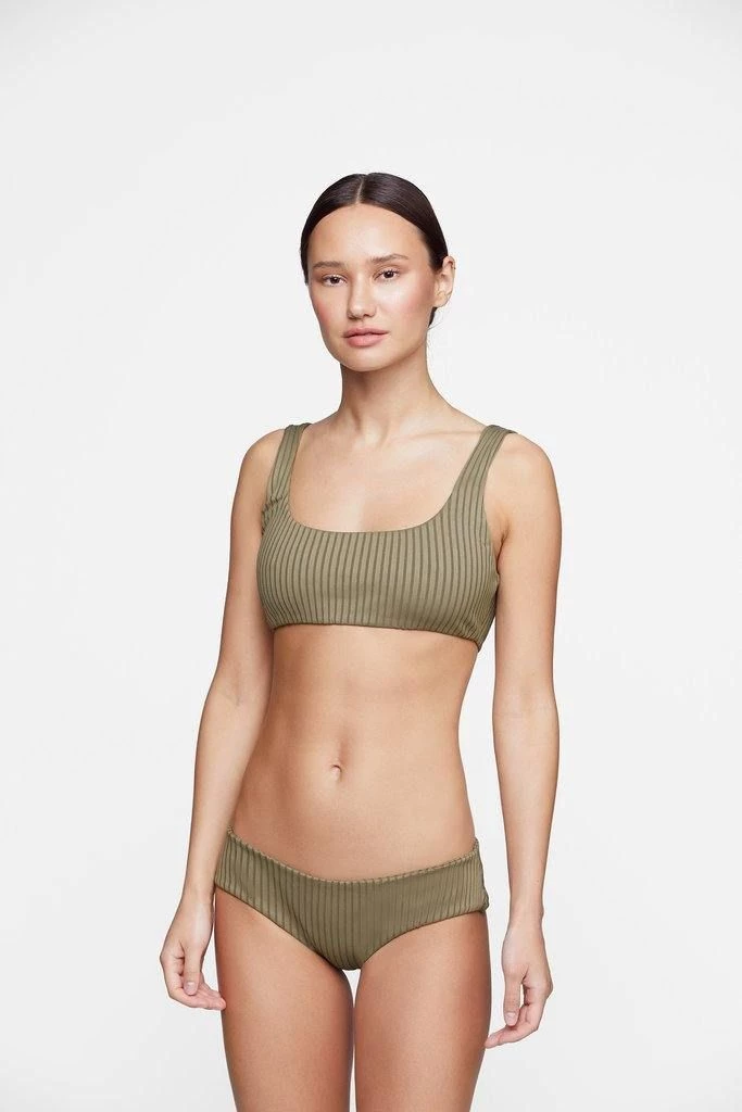 One of our most exciting ribbed fabrications for this year is cut into the sleek and modern scoop neck silhouette to make the Eden top. Featuring comfy wide straps and a slip over fit, the Eden ribbed top features coverage and comfort in all the right places.