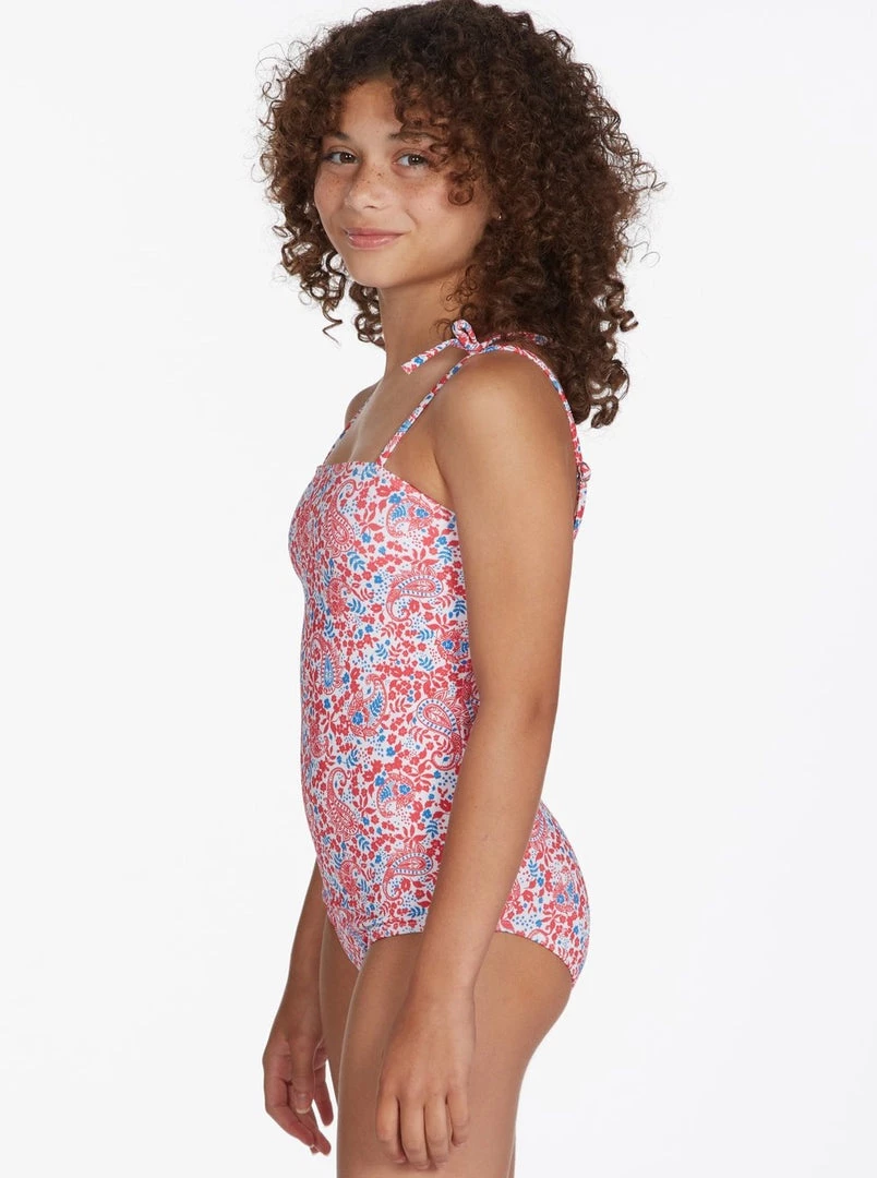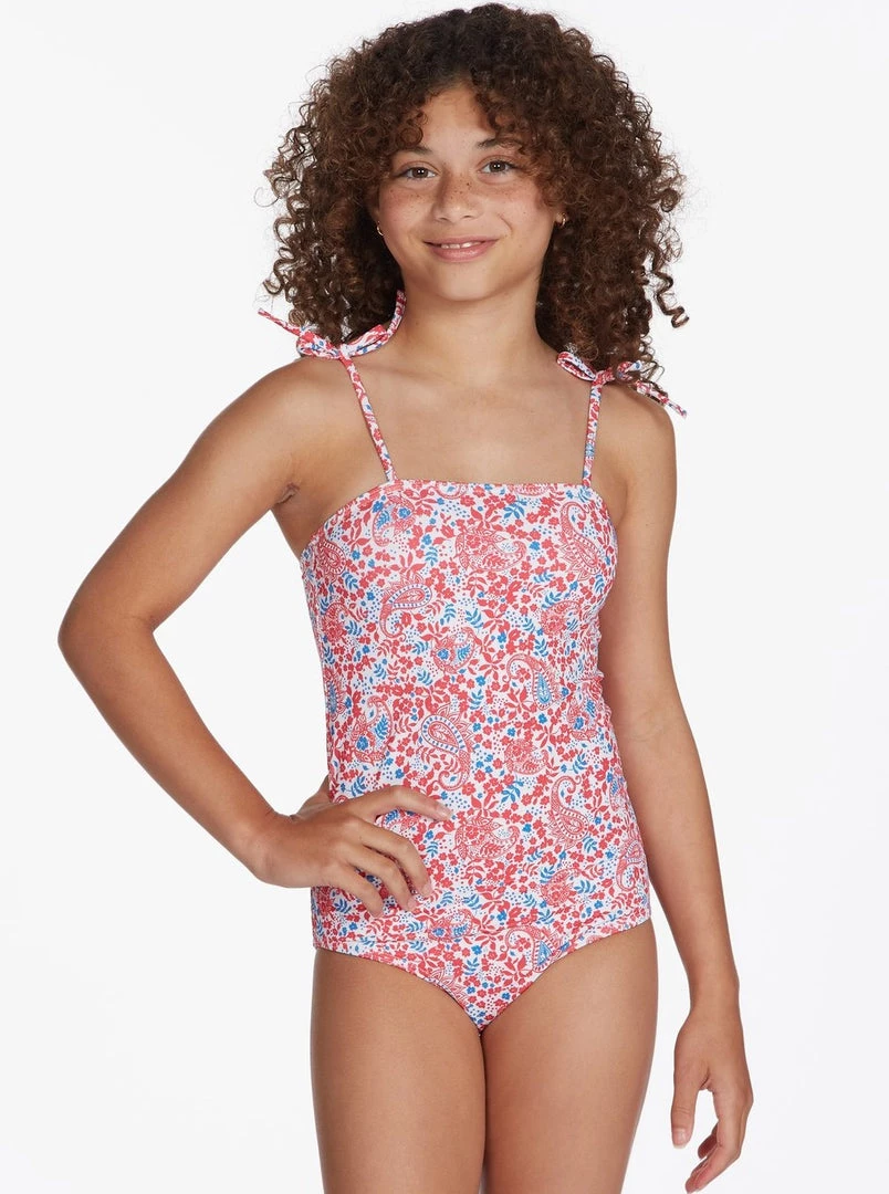 Kickstart the summer fun with these bold, seasonal blooms— the Girls’ Ready For Fun one-piece swimsuit features a floral print on stretchy fabric crafted from recycled poly, plus sweet shoulder ties and an all-day-comfortable fit. Grab it and get out there. Good times are waiting.