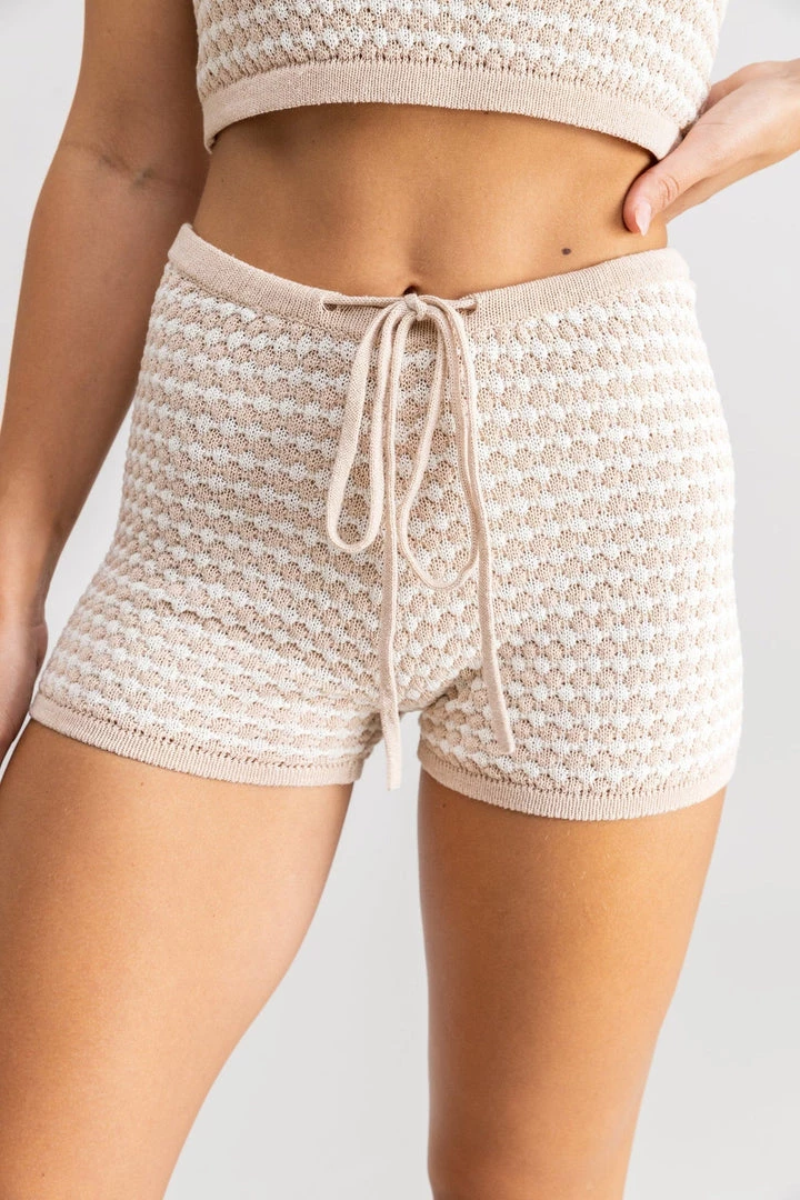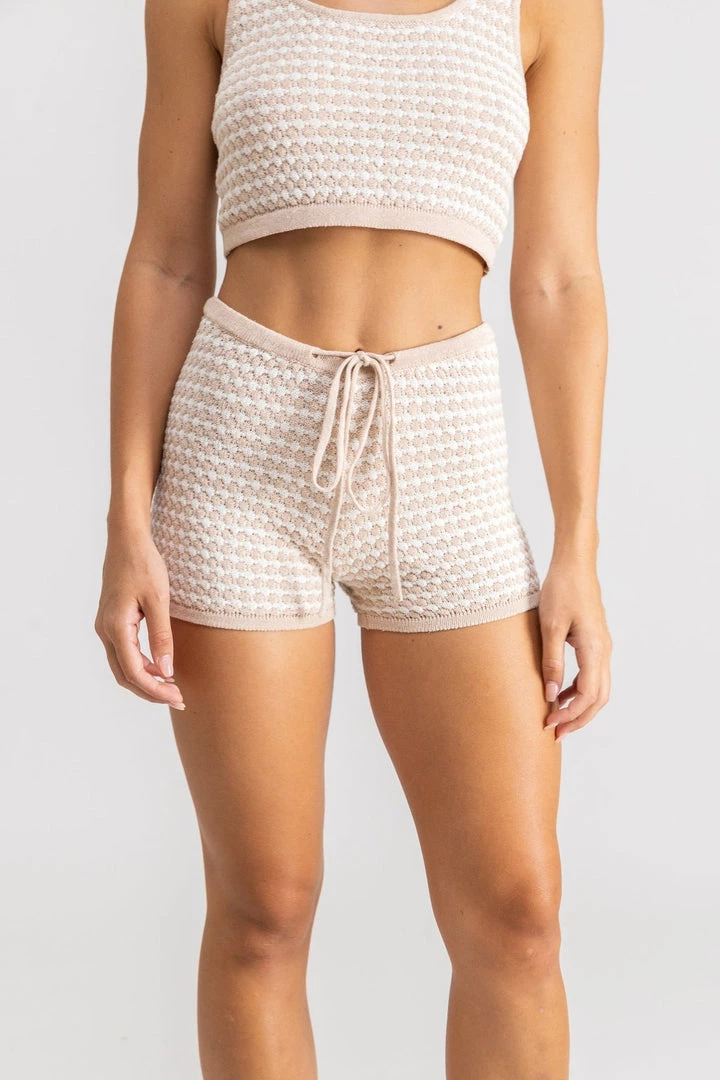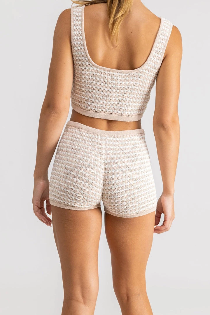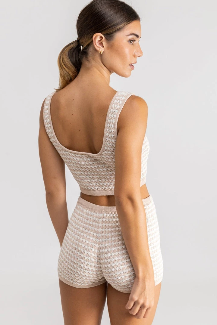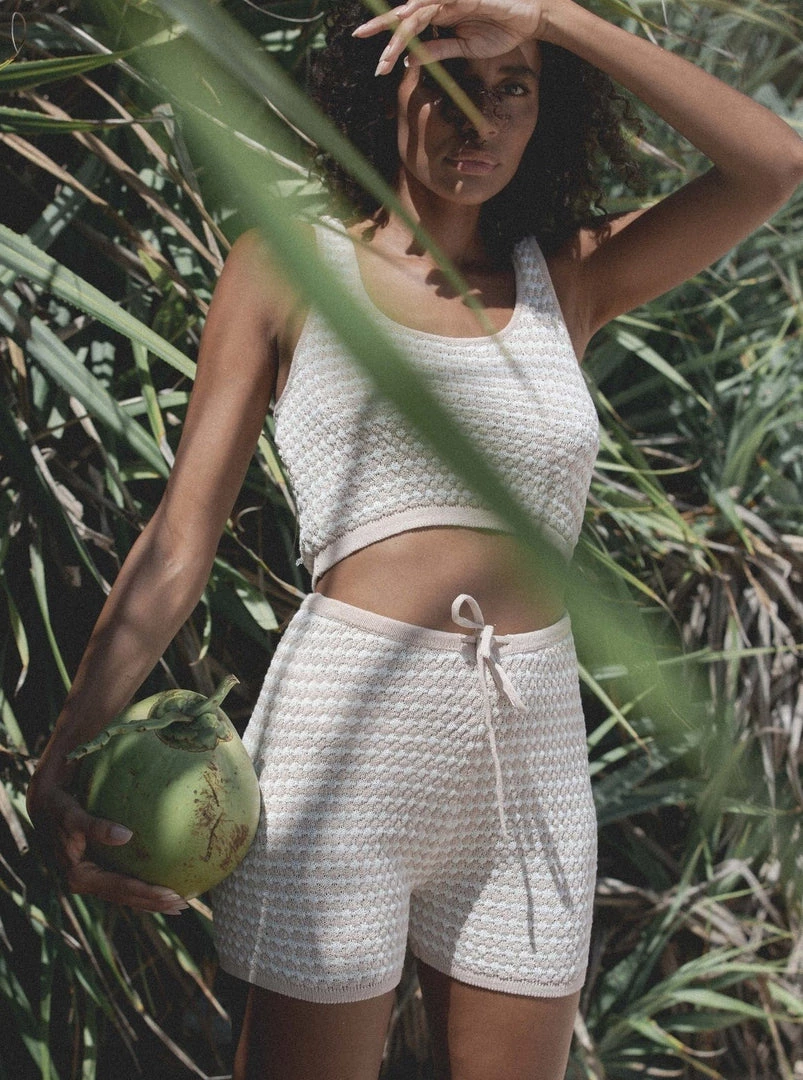 Dreamy and dazed in playful contrast knit Laguna Knit Short, a fun textured moment to pair back with the matching Laguna Knit Crop Top for the must have head to toe co-ord.