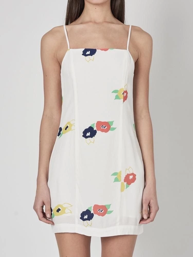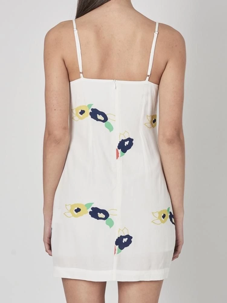 Skinny strap mini dress with square neckline and centre back zipper. Body-skimming fit for an effortless and flattering look. Adjustable straps.