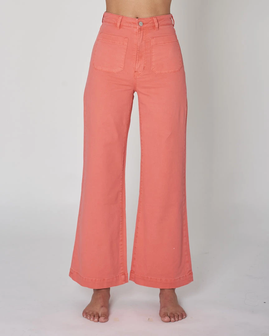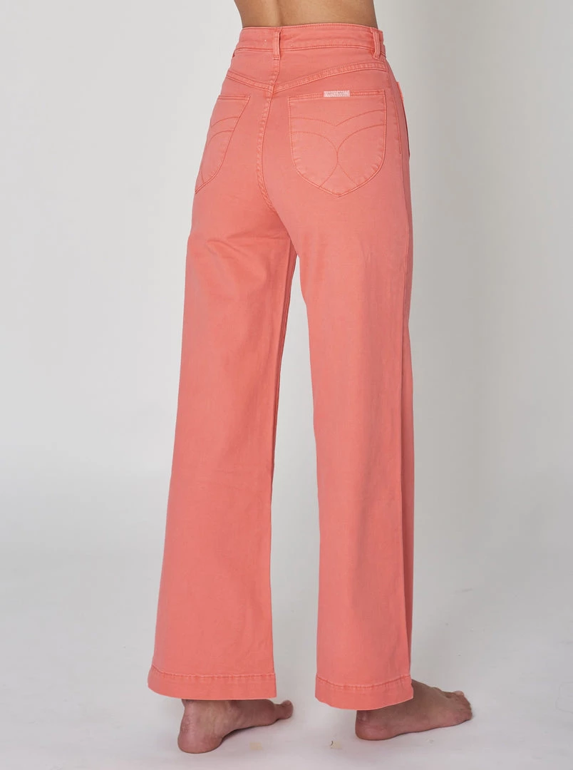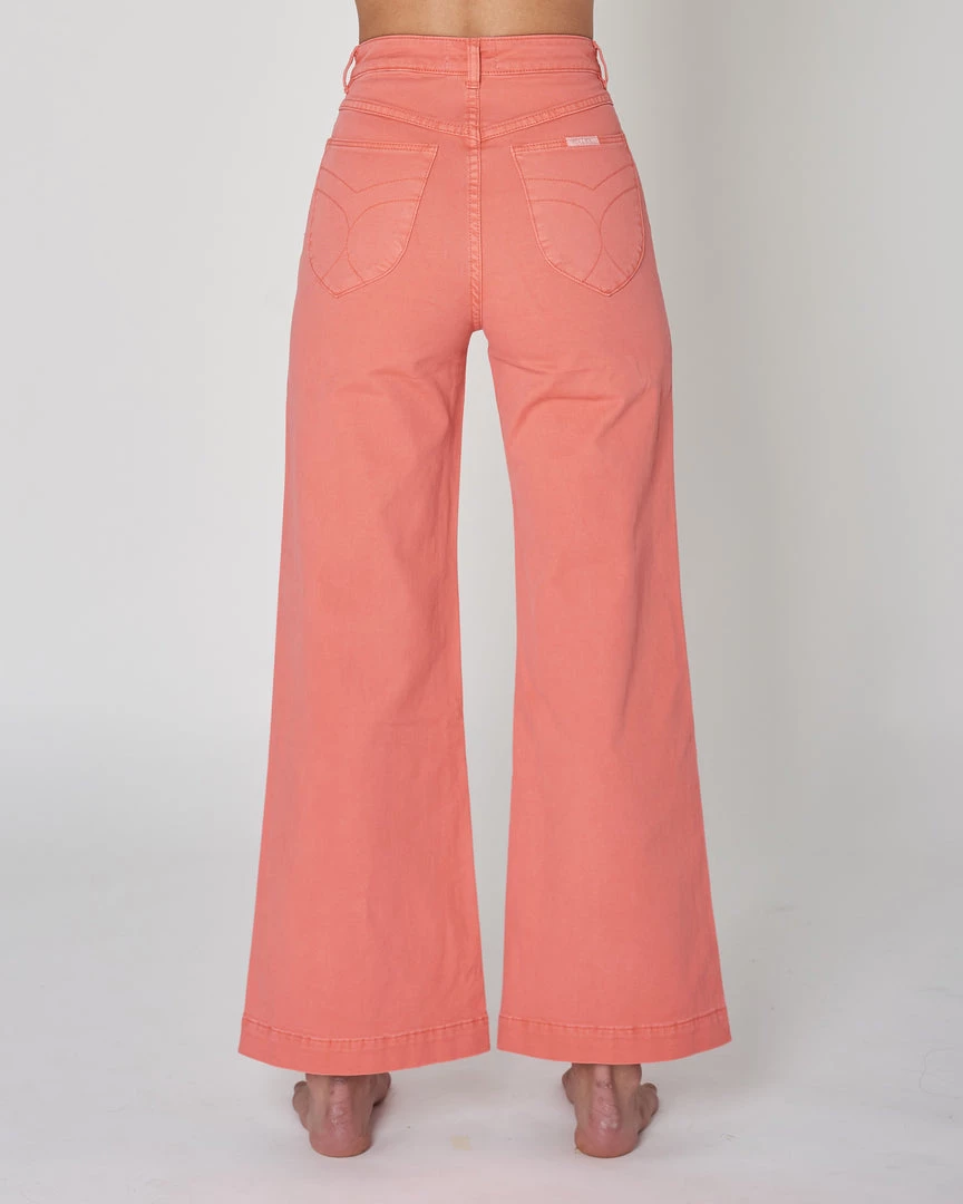 This is a super high-rise, wide leg jean, made with a comfort denim.