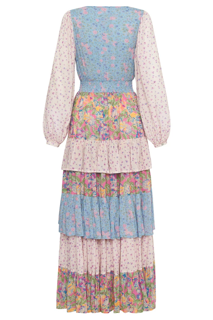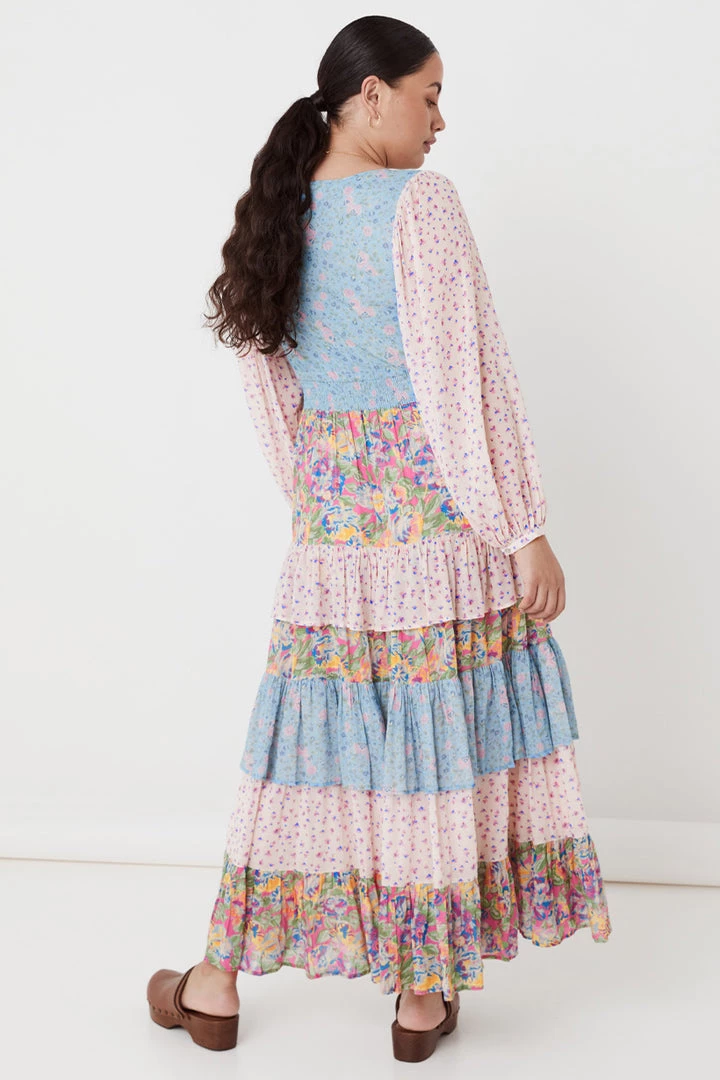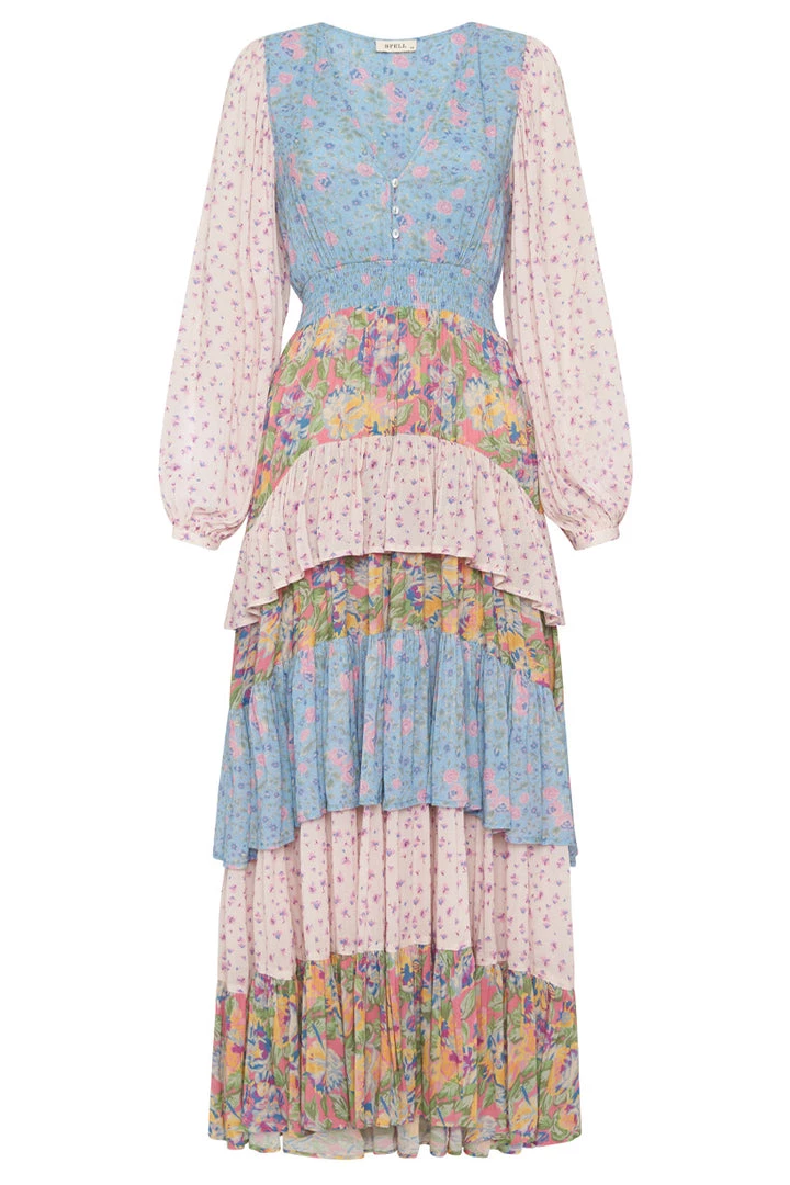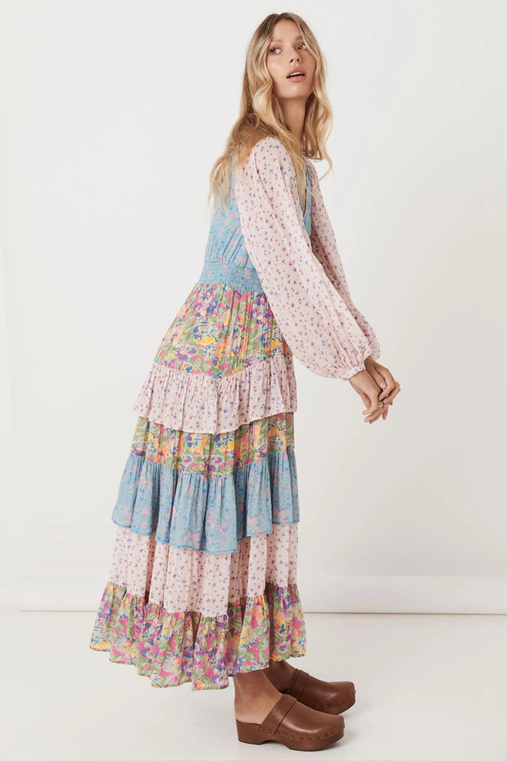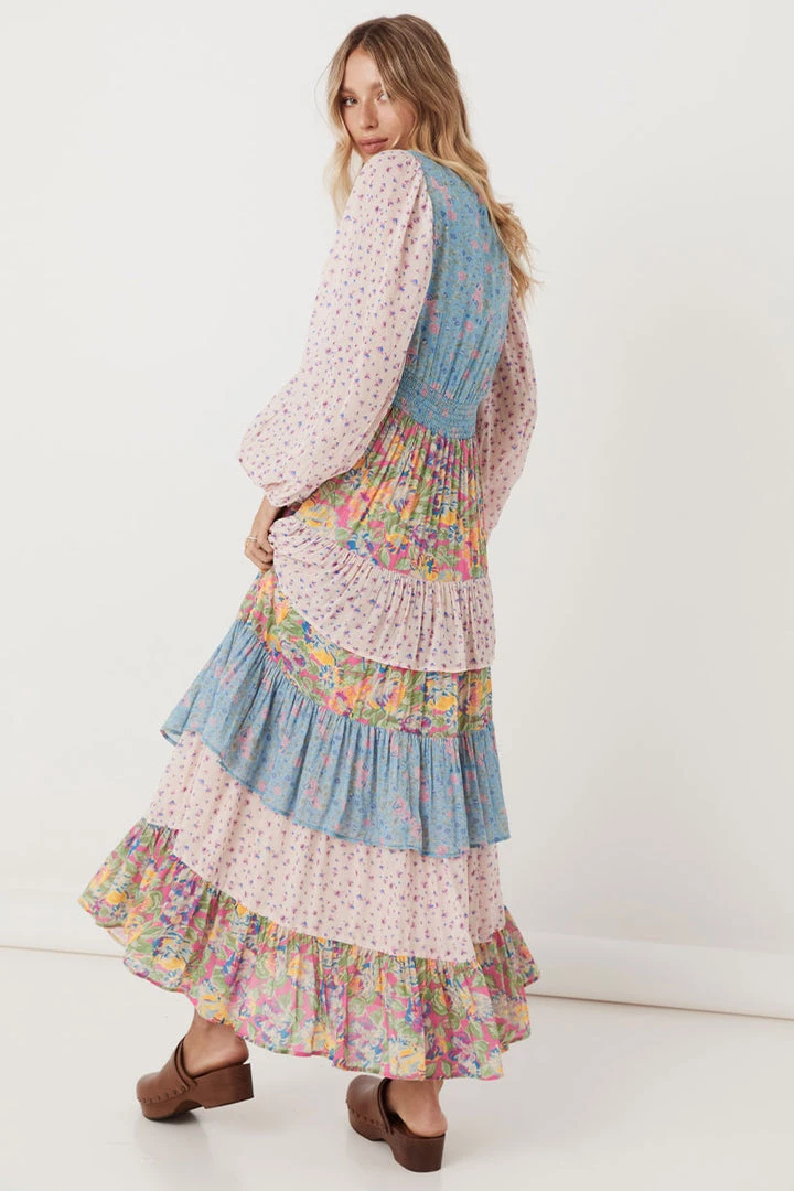 This incredible gown is what Spell dreams are made of, introducing the Dolly Ra-Ra Gown. This stunning new style is the result of yet another ‘Spelly gone rouge’ moment and we are so happy she did! Our design team drew inspiration from the nostalgia of eras past for this stunning style. A cut and sew patchwork of three contrasting floral yardages, billowing sleeves, a plunging V neckline leading into a shirred waist and voluminous skirt of layered frills and gathers. For the Dolly Ra-Ra Gown, more is more and less is simply not an option!