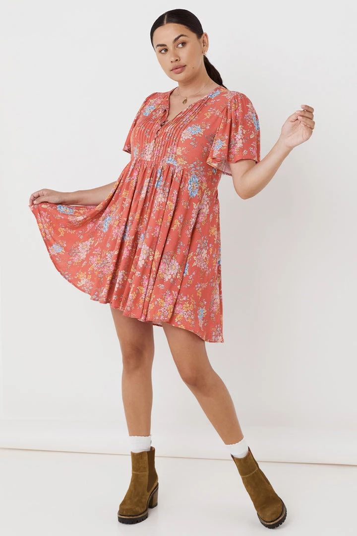 The Meadowland Flutter Sleeve Mini Dress is a pretty new style from our Design team. This cute-as -hell style is designed for the rock and roll romantics at heart; it’s fun, flirty, and perfect to just throw on and go. Style it layered in the colder months with your fave boots and snuggly jumper for a pop of colour, or in Spring with your sandals and woven basket.