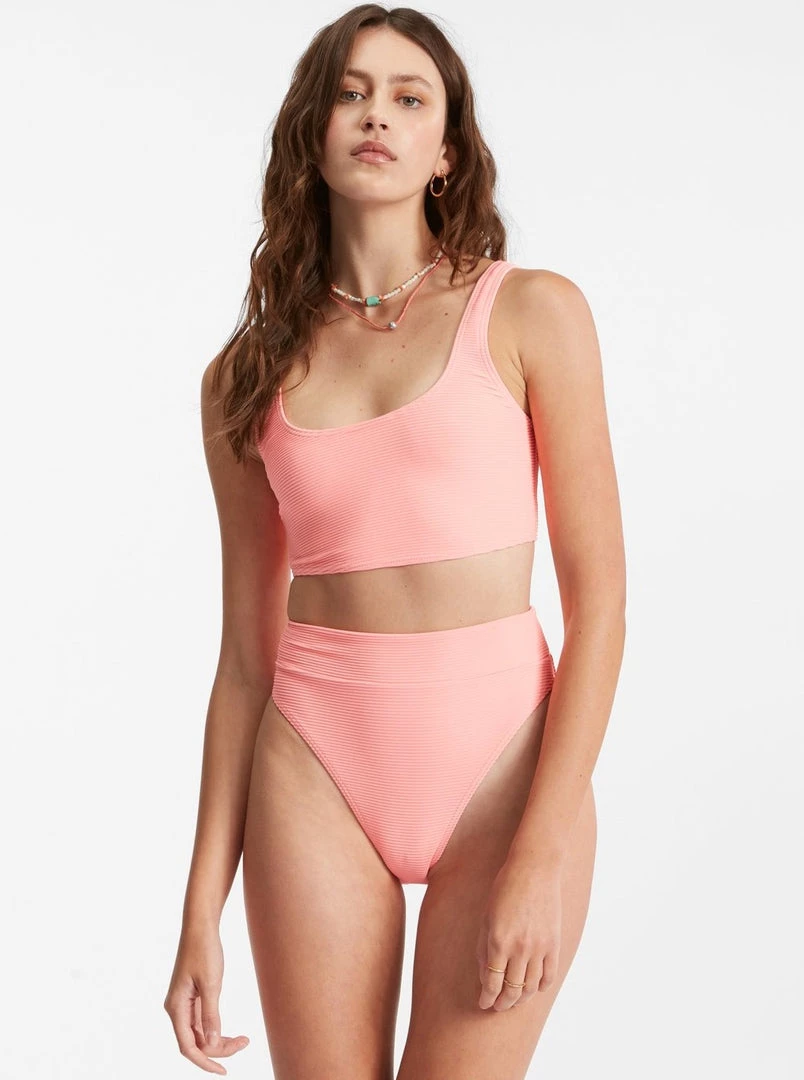 Time to adjust your swimwear standards because the Tanlines Rise has just risen the bar. High— really high. This women’s bikini bottom redefines high-waisted with a cut that reaches past the belly button and delivers a skimpy view from behind. It’s designed to stay put while you dance across the waves. Plus, we’ve got your comfort covered with recycled rib fabric that feels incredibly soft and stretchy.