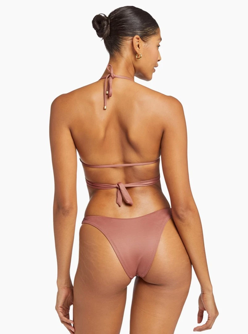 Adjustable to wear as a triangle, halter, bandeau or wrap top. She’s got options.