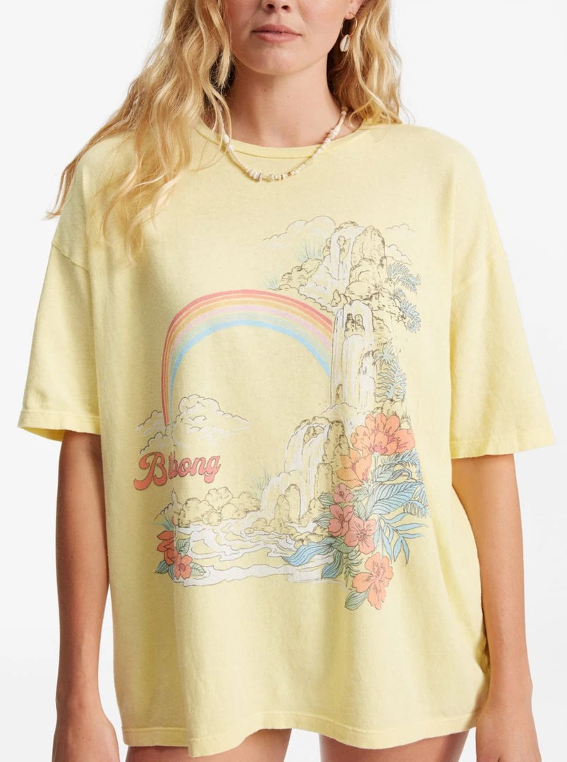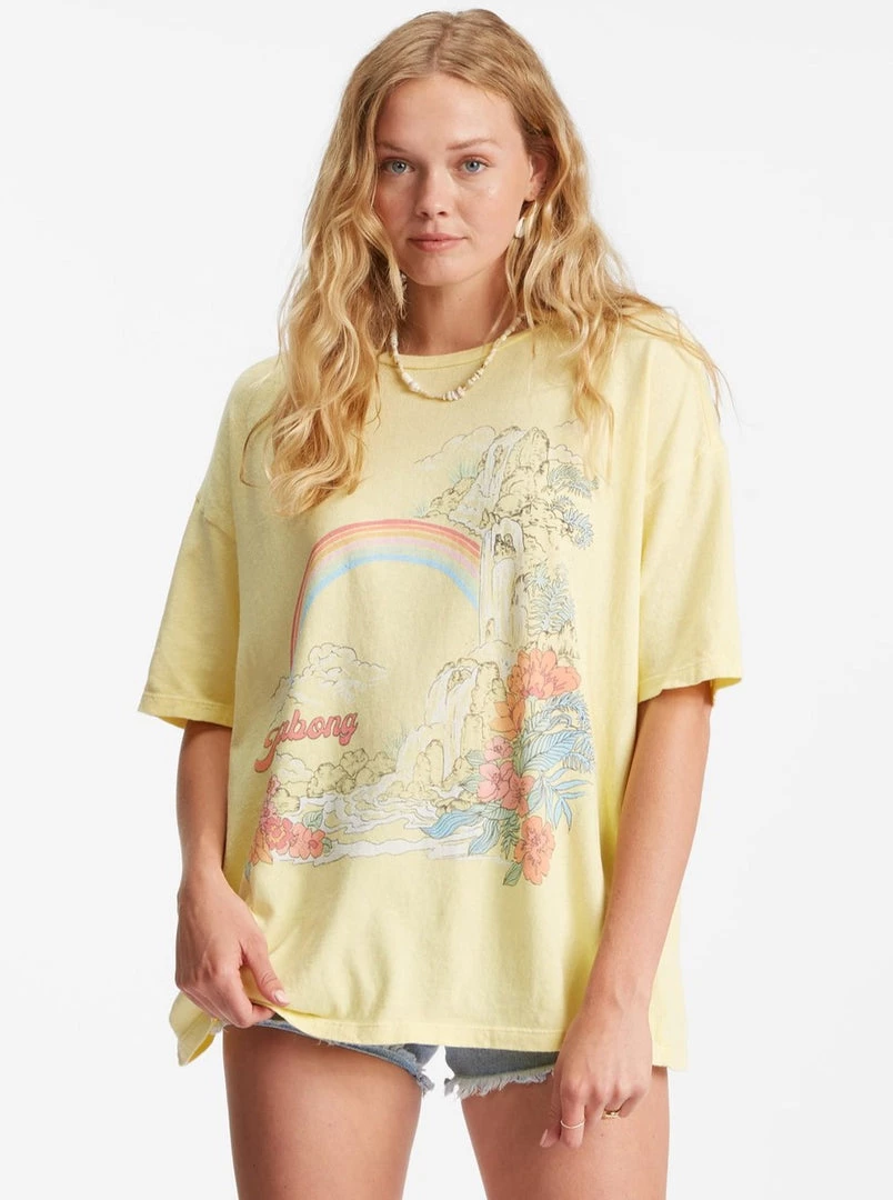 Every rainbow needs a pot of gold— find yours in the Waterfall boyfriend t-shirt. Super-soft and lightweight, it features a large graphic at the chest, an oversized fit, and loose-knit cotton jersey that’s been artfully pigment-dyed to give it a perfectly well-worn look.
