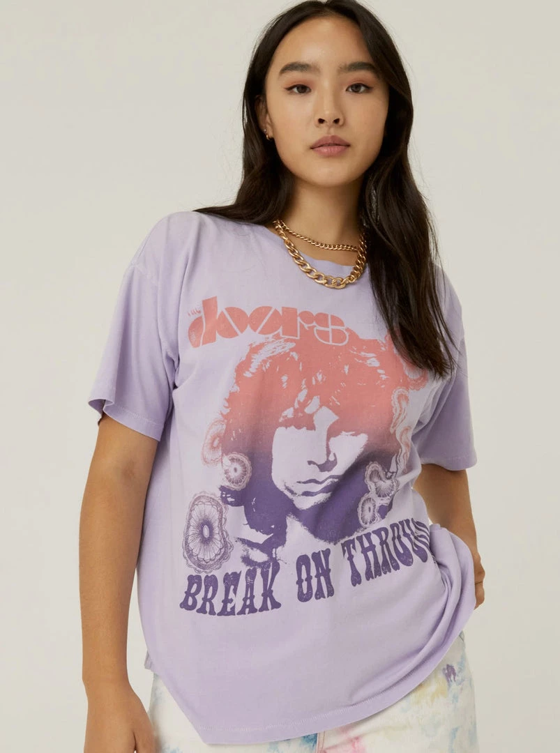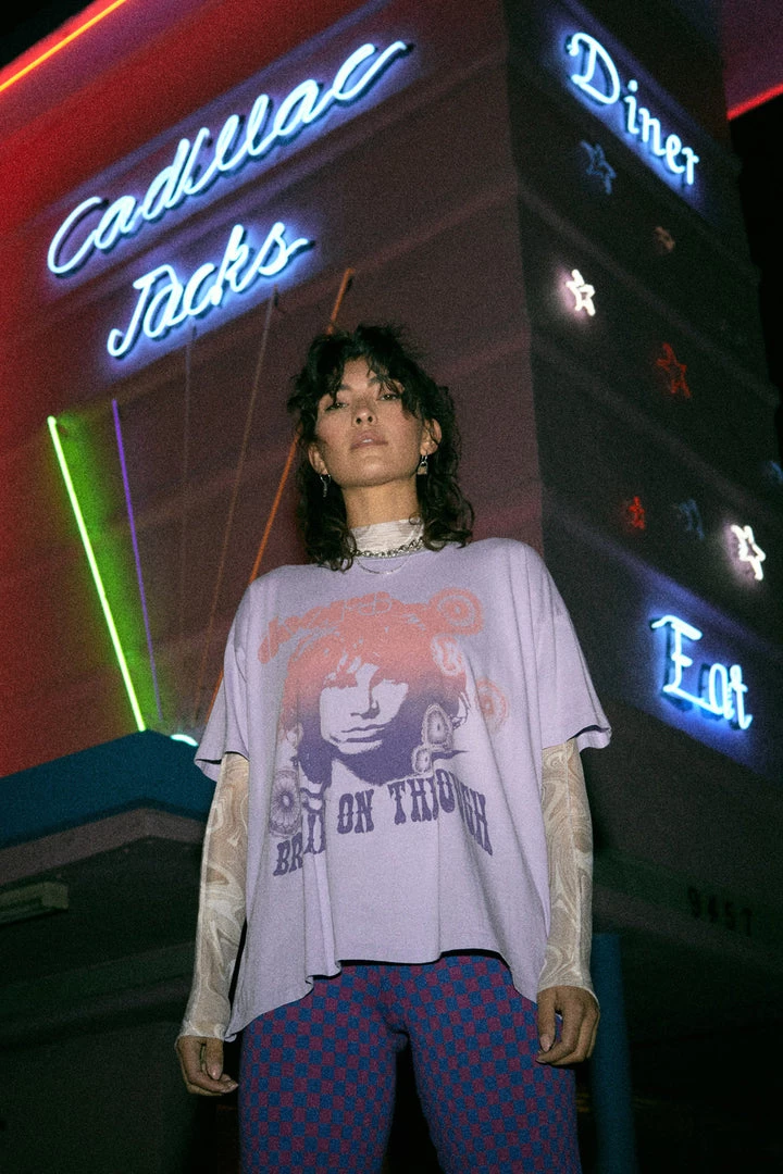 Thanks to Jim for another leading track, “Break On Through” went on to see plenty of spins. Written like a love song, Morrison put his intoxicating touches on the track by juxtaposing romantic lyrics with sinister lines. Morrison and his lyrics land center on The Doors Other Side Merch Tee designed in a lilac haze with retro accents to match their uptempo song’s powerful debut.