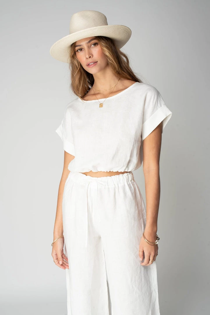 Pacific Linen Rolled Crop Tee