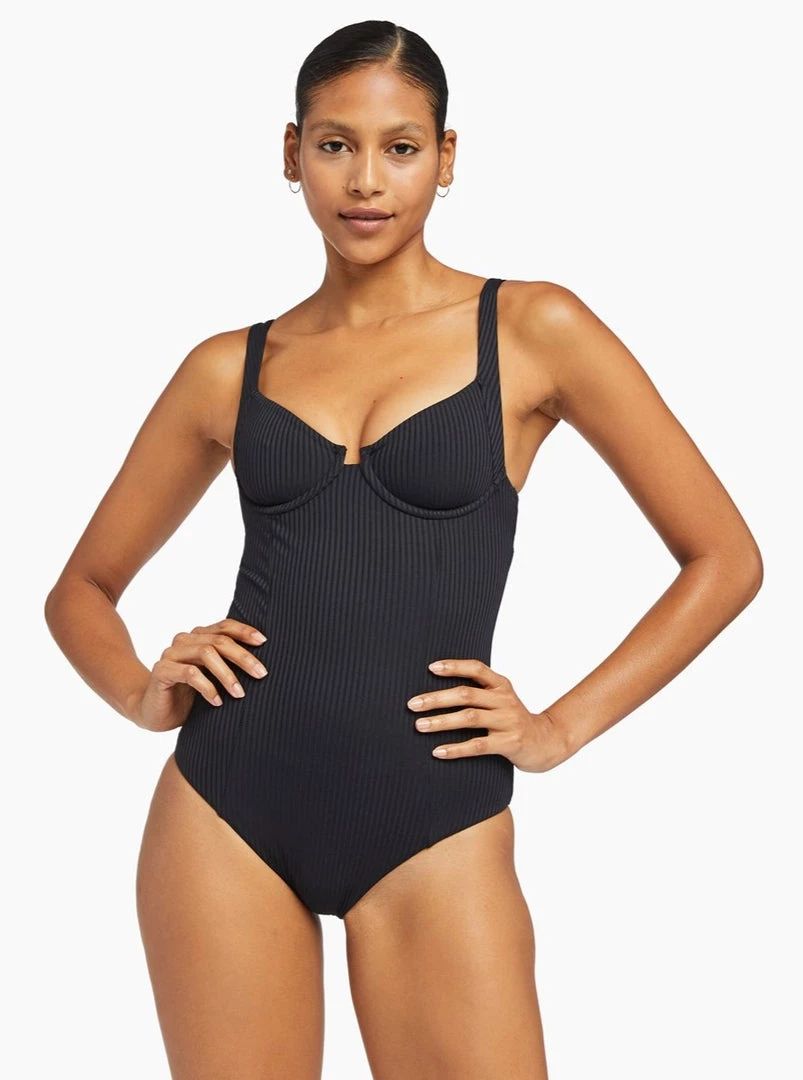 Made from EcoRib – a sexy, stretch-ribbed swim fabric made from nylon fabric scraps. It’s lightweight, breathable and form flattering. Our EcoRib fabric is textile crafted by a mechanical regeneration system that uses no chemical materials. Its production saves .63 liters of oil and 33 liters of water per meter of fabric. Sustainably made in California.