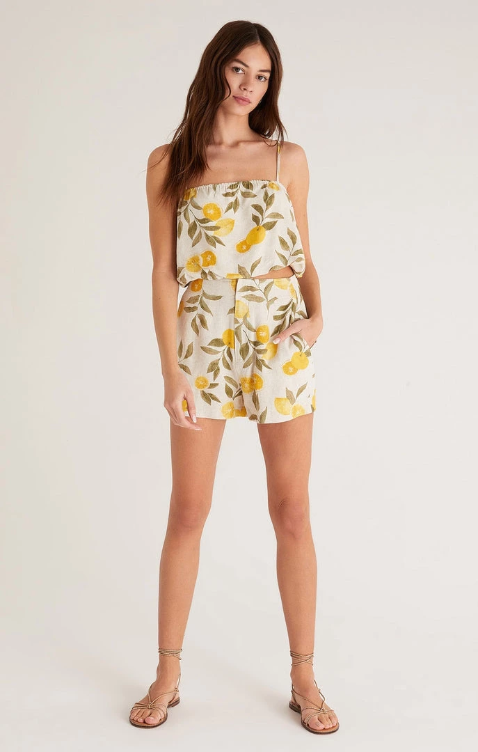When life gives us lemons, we make the Paige Citrus Tank Top! You’ll love the feel of our new Textured Linen fabric, cool and breezy for all-day comfort. This cropped style looks super cute with high waisted denim or as a set with the Keaton Citrus Shorts.