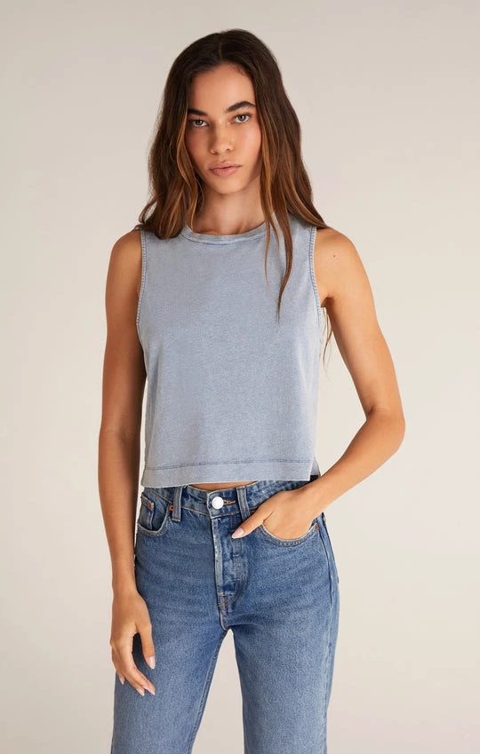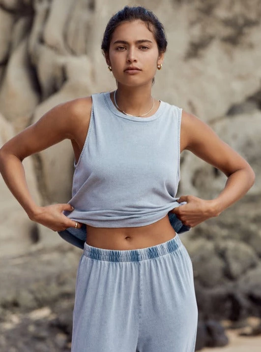 Denim’s favorite tank! The Sloane Jersey Denim Muscle Tank is an essential tank you’ll want have in your rotation, with its sleeveless silhouette, crew neckline, and relaxed body. Our 100% Cotton Slub Jersey Knit is lightweight, soft, and stretchy, making it a versatile must-have. Make it a set with the Scout Jersey Pant.
