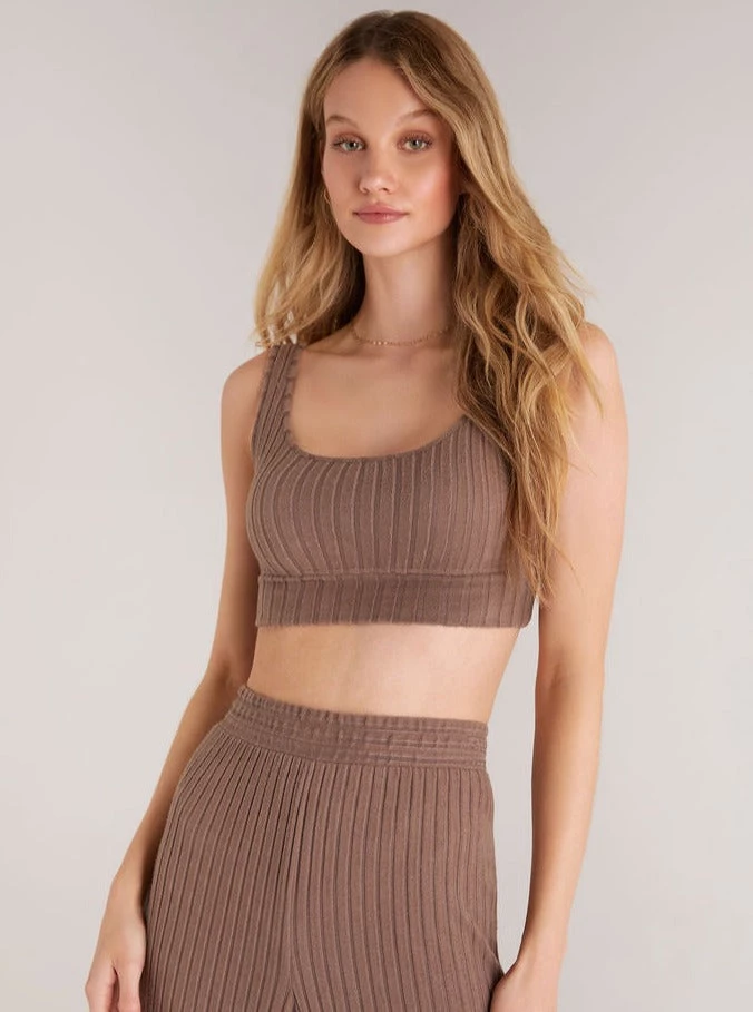 Comfort is our Silky Rib fabric, which we’ve used to make her new go-to lounge bralette. The Zoe Rib Tank Bra features a soft scoop neck and band. Pair it with the Show Me Some Flare Rib Pant for a complete look.